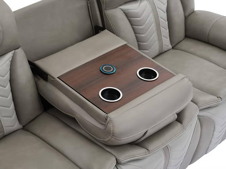 RECLINING WITH DROPDOWN TABLE/WIRELESS CHARGER/MULTI COLOR LED AT THE FRONT AND IN TWO ARMS/REMOTE CONTROL