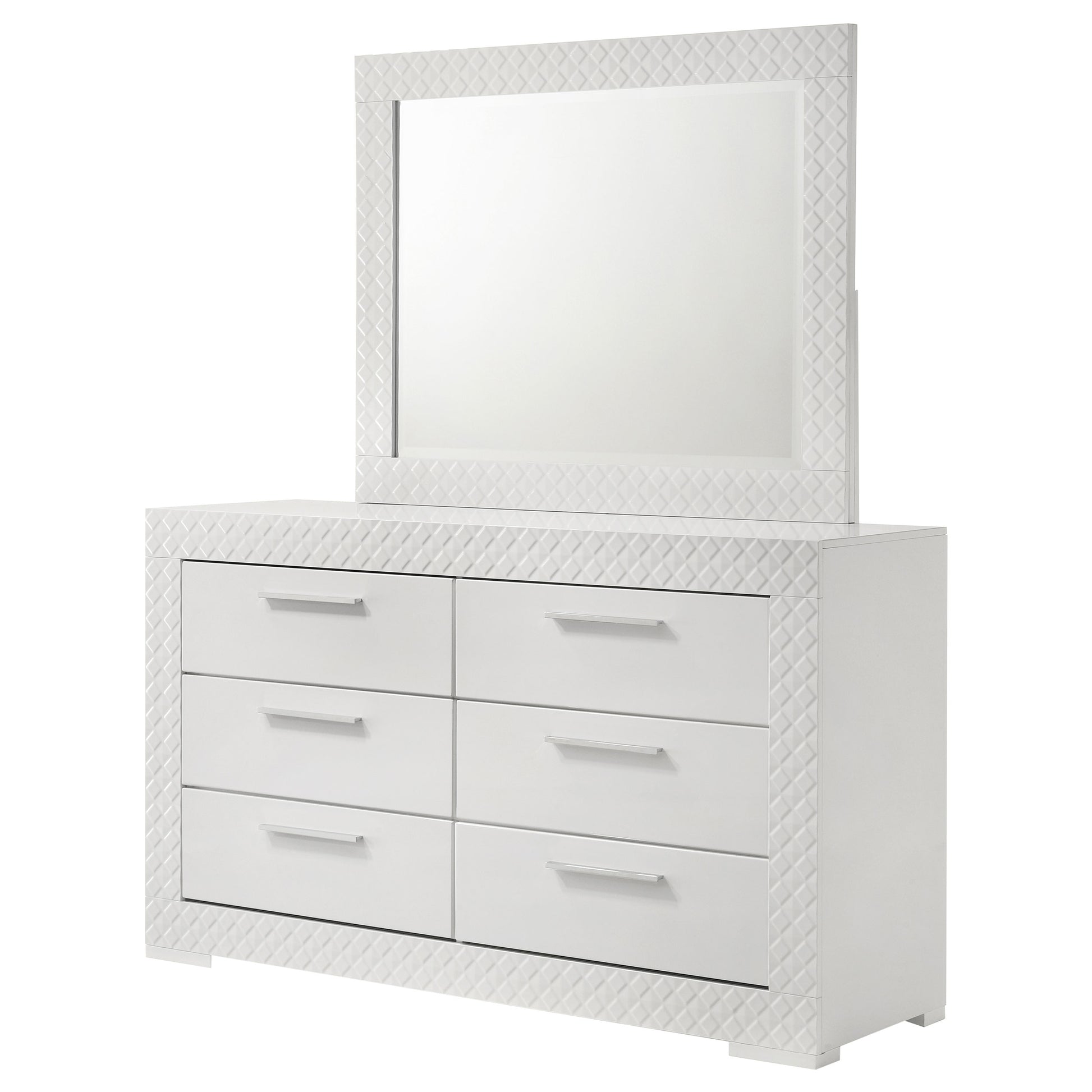 Ives 6-drawer Dresser and Mirror White High Gloss