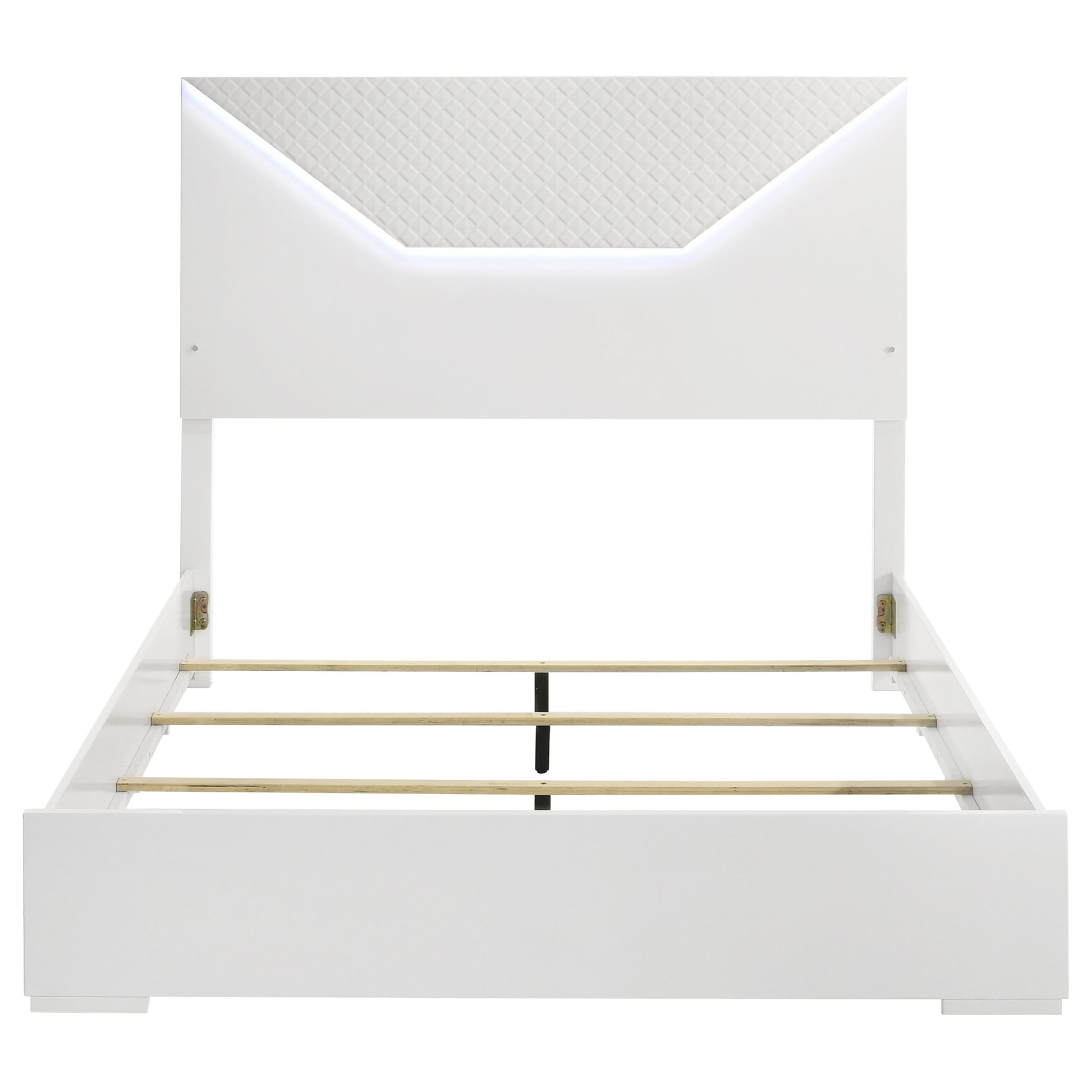 Ives Queen Panel Bed LED Headboard White High Gloss