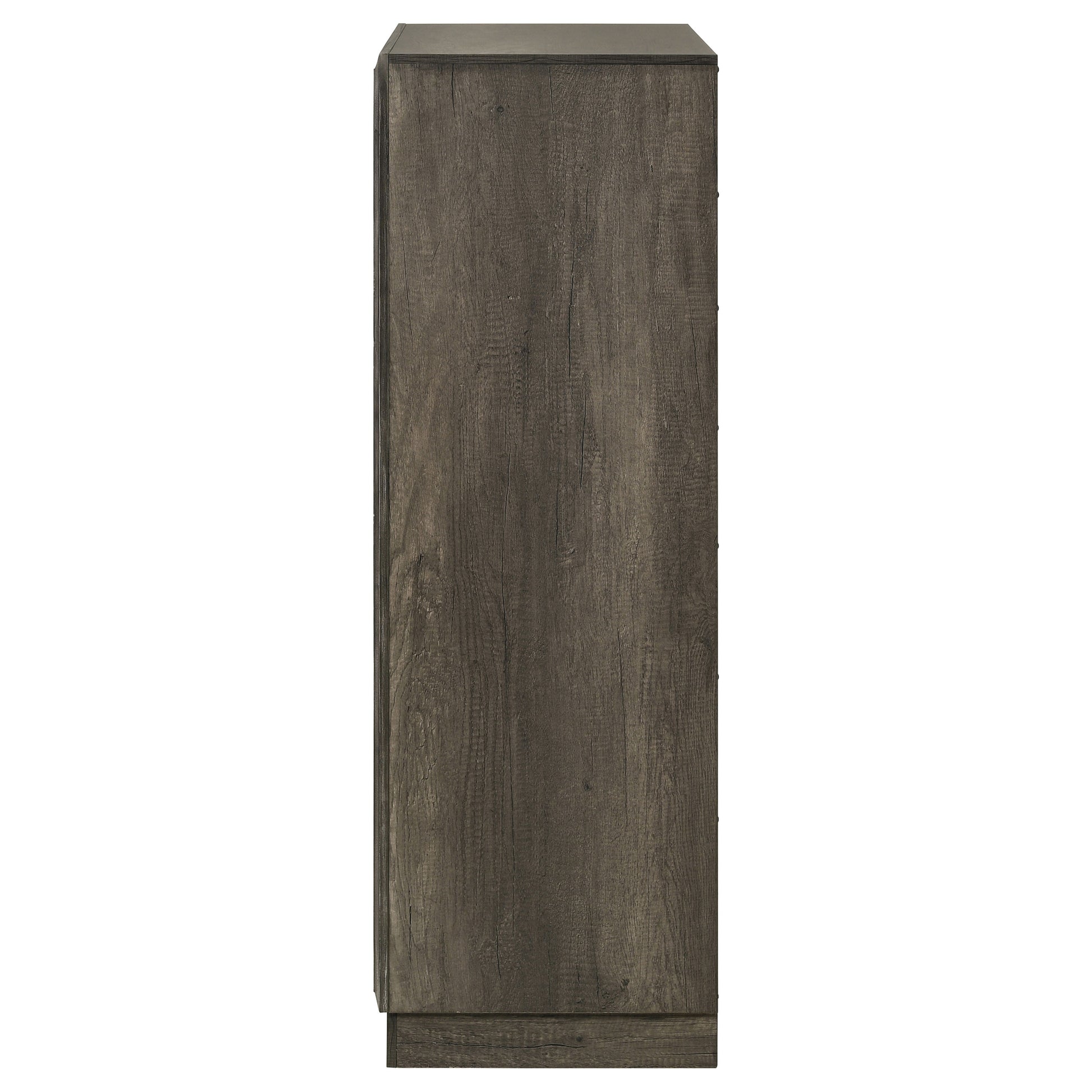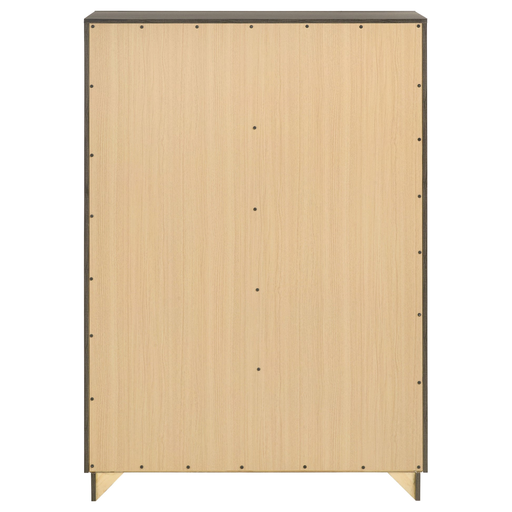 Achieve the perfect balance of style and utility with our 5-drawer chest. From the mesmerizing glittering strips to the smooth grey oak finish, every detail exudes sophistication. The black felt-lined top drawers provide a luxurious touch and ensure the safety of your valuables. Embrace the pinnacle of elegance and functionality with this exquisite chest, adding a statement piece to your living space.