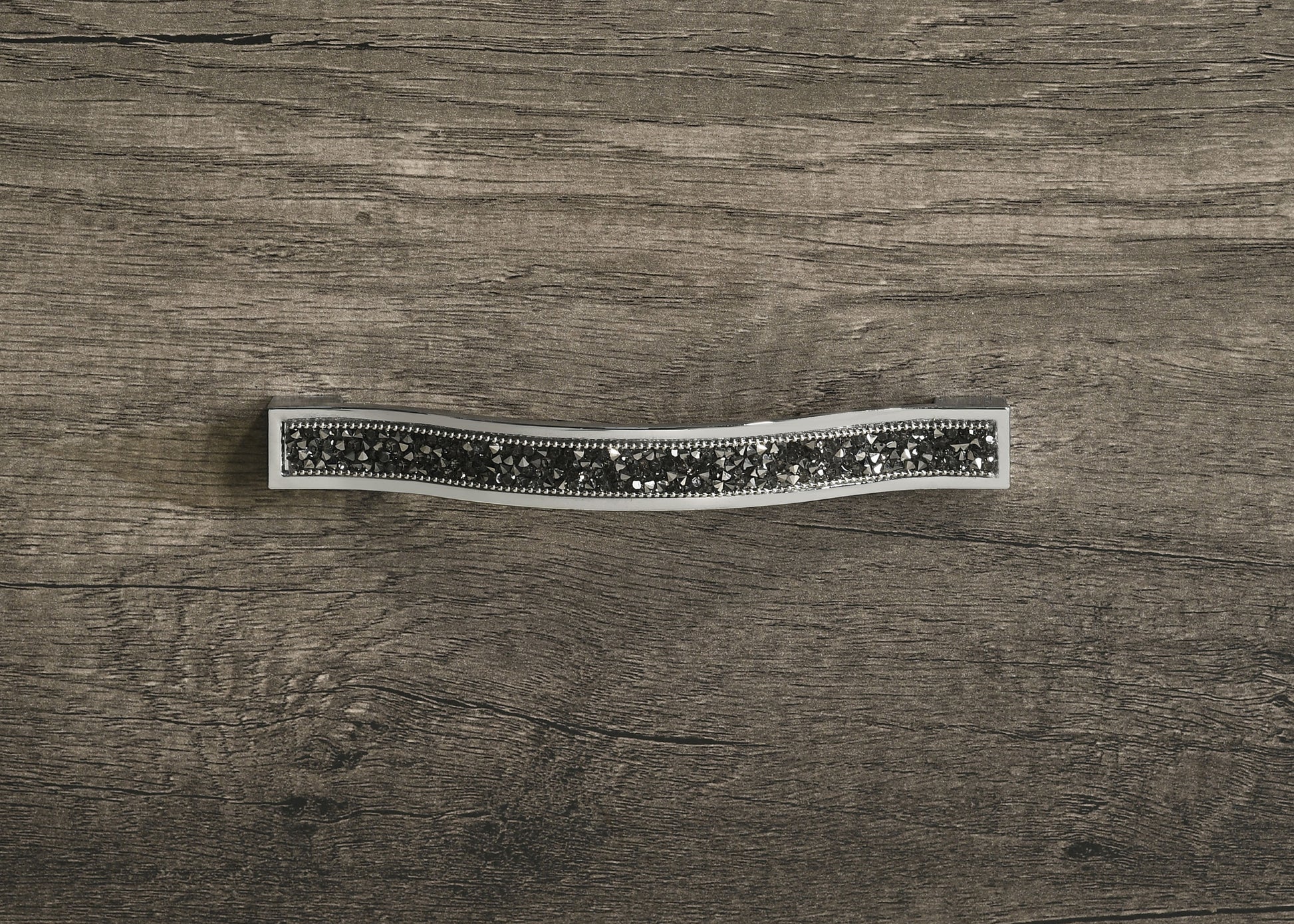 Experience the fusion of modern glamour and functionality with our 6-drawer dresser, a key piece from our contemporary collection. The dresser's glittering strips and shimmering pulls are eye-catching, while the black felt-lined top drawers provide practicality and protection for valuables. Its subtle V-shaped design adds sophistication to your living space. The grey oak melamine finish of the shimmer-framed mirror complements the dresser, reflecting style and sophistication, and enhancing your decor.