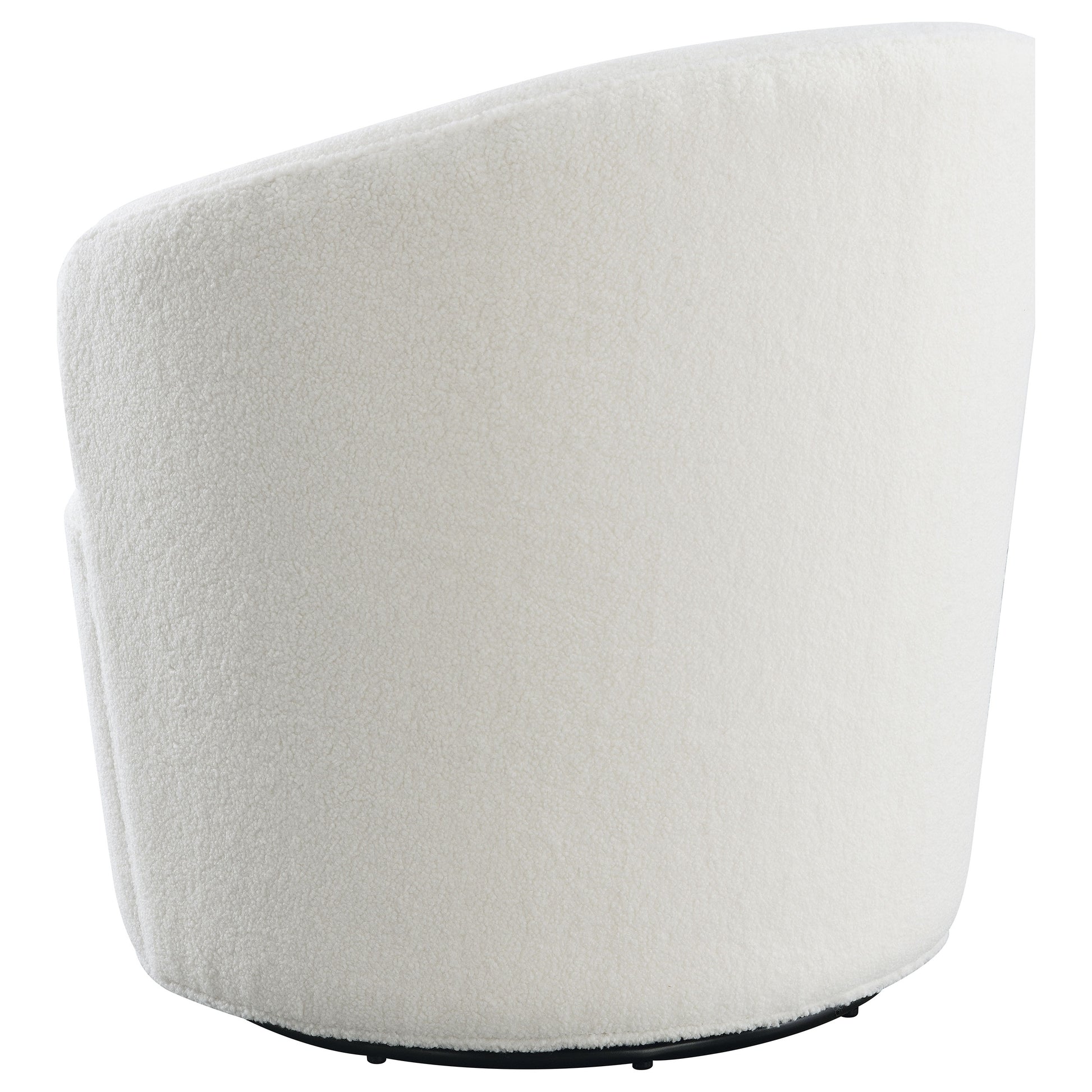Compact in silhouette but overflowing with style, this contemporary accent chair is a perfect choice for a bedroom or living room sitting area. Its rounded, barrel-inspired silhouette swivels for 360-degree seating perfect for multi-functional spaces. The tight back and seat are upholstered in bright white faux sheep skin that adds soft texture and dimension with an earthy, modern twist. Foam cushioning assure maximum comfort, with webbing support for a firm feel. Perfect for lounging during a video call or catching up with friends and family.