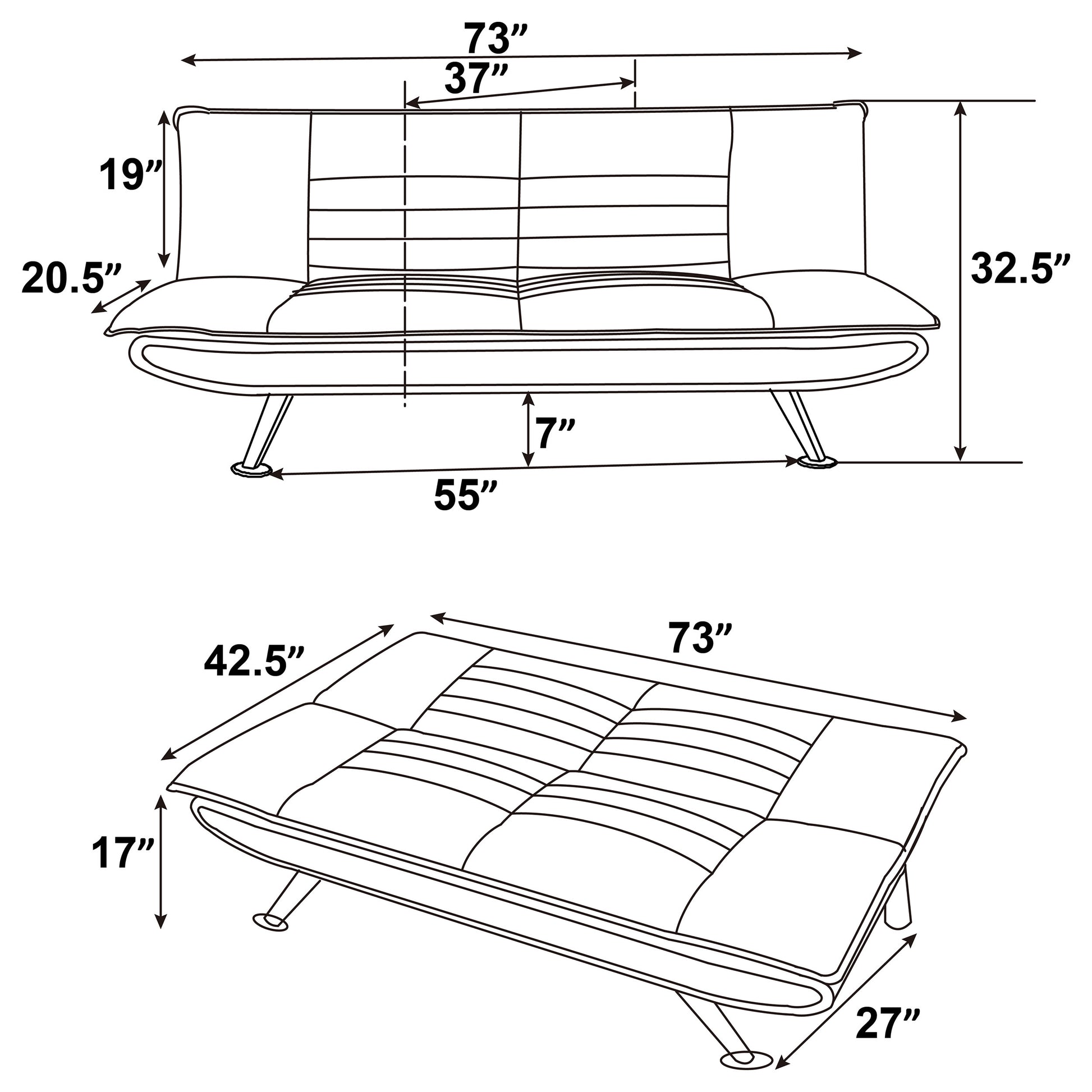 | Sofa Bed (flat) | 73 | 42.5 | 17 | ||