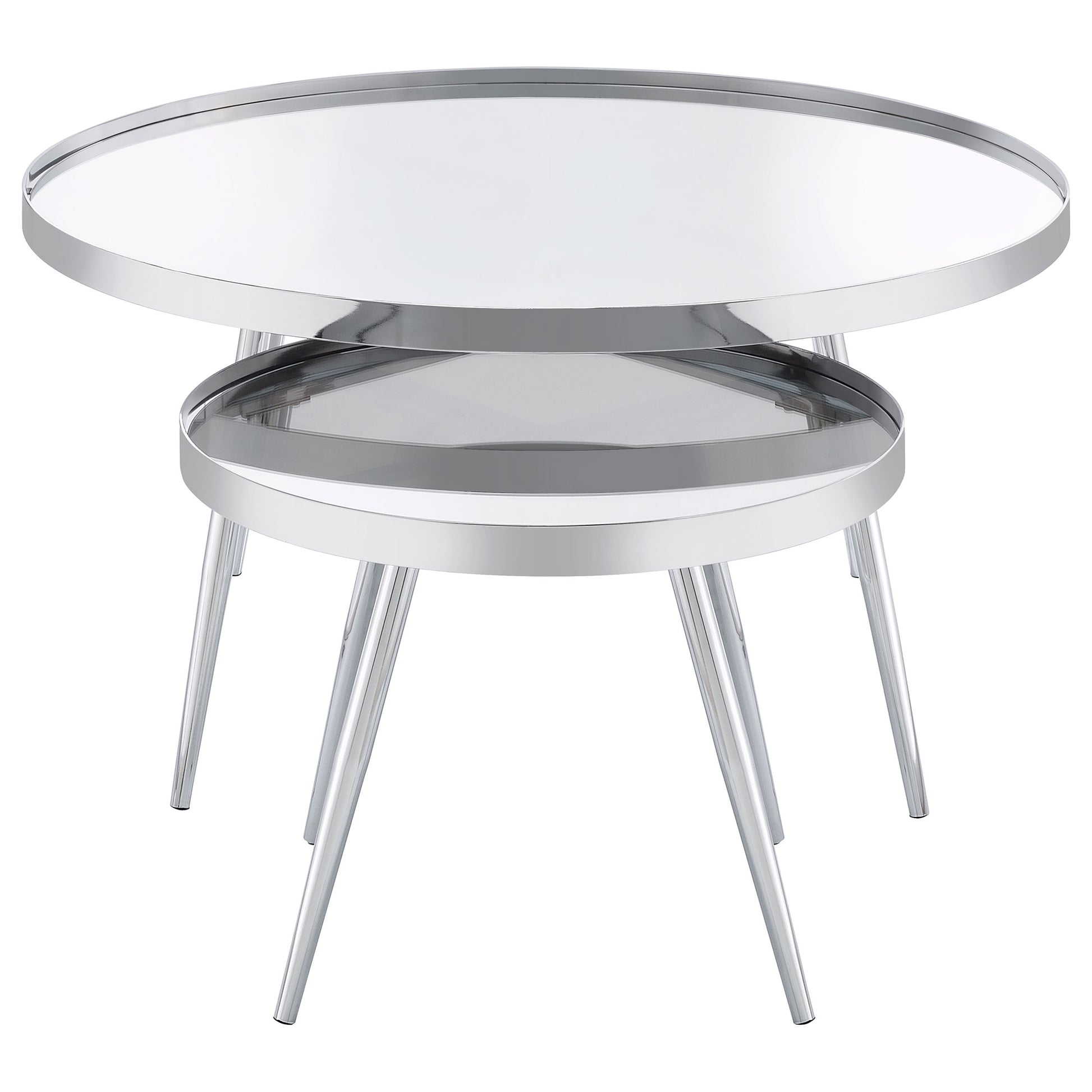 Kaelyn 2-Piece Round Mirror Top Nesting Coffee Table Chrome