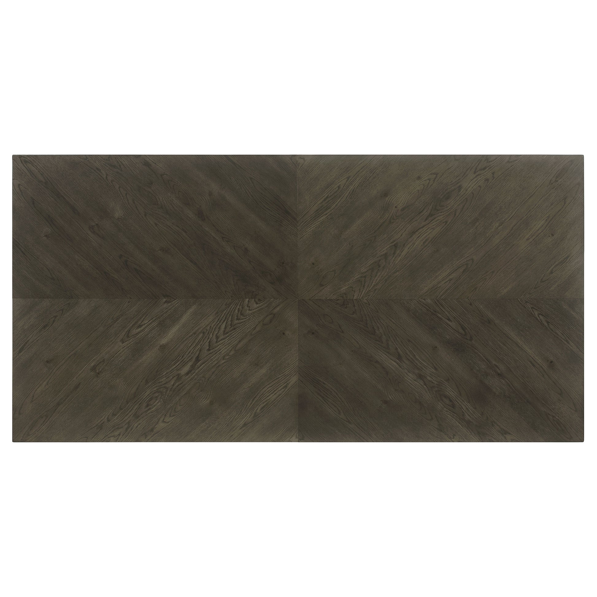 Take your dining experience to new heights with our chic transitional table. The sleek dark grey finish, adorned with a subtle chevron pattern, adds a touch of elegance to any space. The table's simple trestle base design brings a modern touch, completing the sophisticated look. Elevate your dining area with this exquisite table, where style meets functionality for unforgettable gatherings.