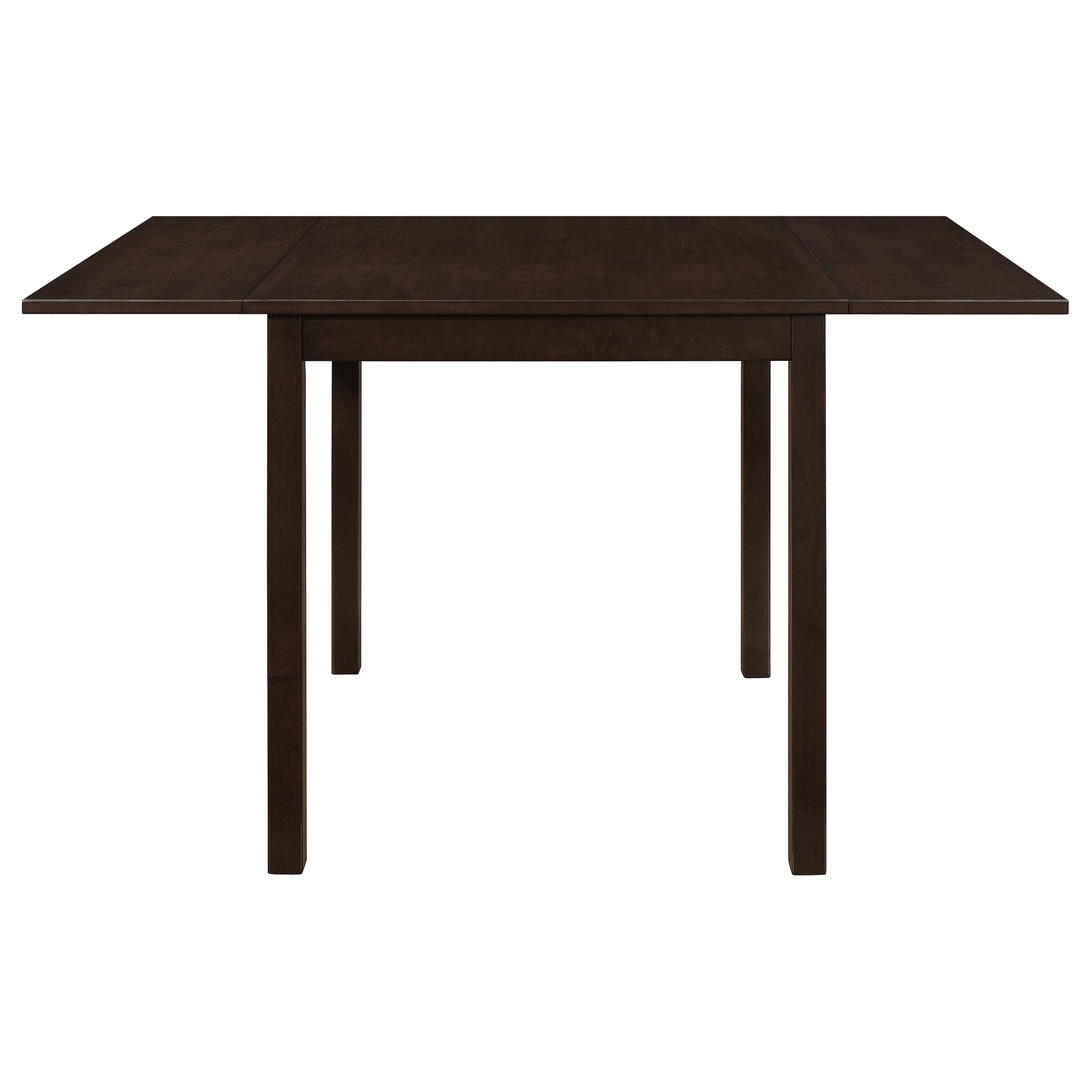 Perfect for a small dining room or kitchen nook, this cappuccino dining table features a classic silhouette. The rich and deep finish warms up even the most neutral of spaces. Fold up the table ends to accommodate for guests, or leave them down for a stunning cafe-inspired look. Straight and sleek, the smooth legs offer a clean aura. Decorate with a vase of flowers for a fresh feel.