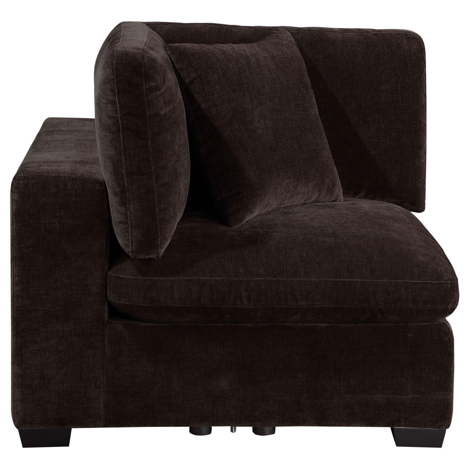 Maximize seating in your modern living room with this stylish corner chair, designed to connect sectional pieces seamlessly. Upholstered in a smooth, soft fabric, this chair provides a cozy spot to relax while maintaining a sleek, contemporary look. The corner design is perfect for anchoring your sectional, creating a cohesive and inviting seating arrangement. With plush cushioning and a durable wood frame, this corner chair offers both comfort and longevity. Its adaptable style makes it an excellent choice for both contemporary and transitional spaces.
