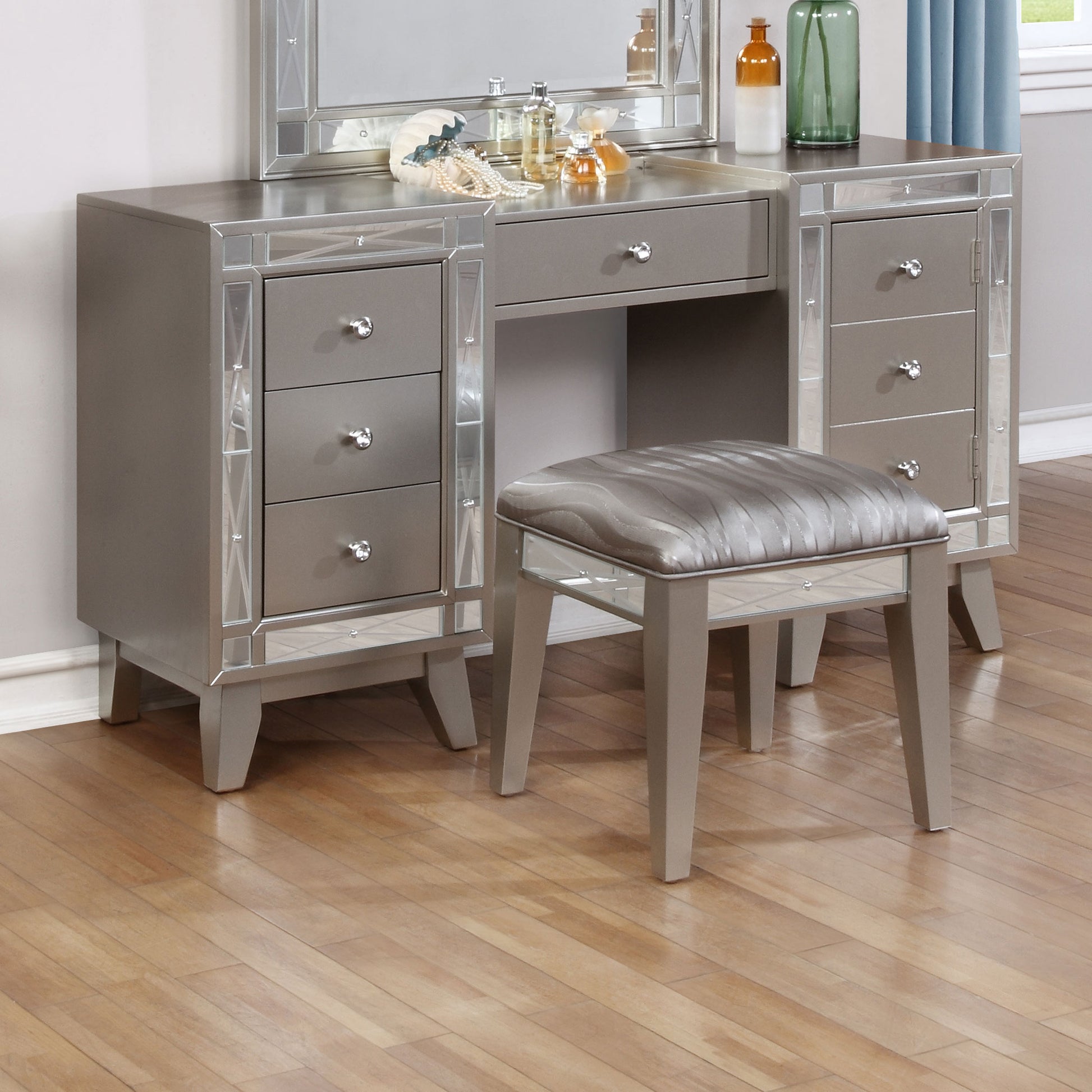 Leighton Vanity Table and Stool Set Metallic Mercury