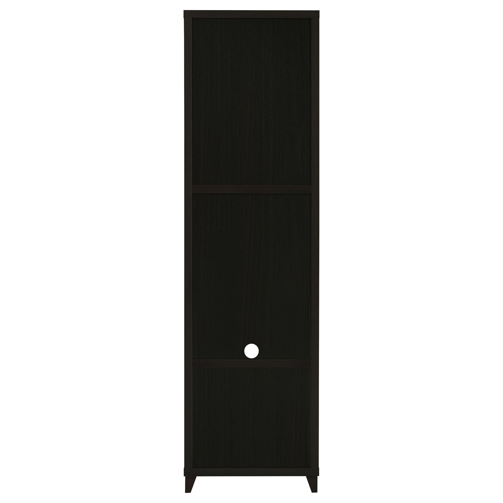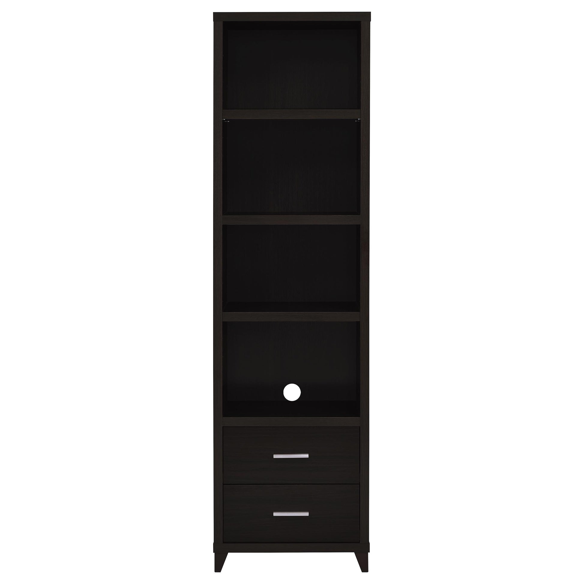 Overhaul your living space with this cappuccino entertainment wall. This wall is constructed with four pieces, including one TV console, two media towers and one bridge. A total of 16 shelving units are available to store your media and decor. Meanwhile, five concealed drawers enhance the organization of your living space. This transitional entertainment wall is suitable for all styles of living spaces with its clean and modern design.