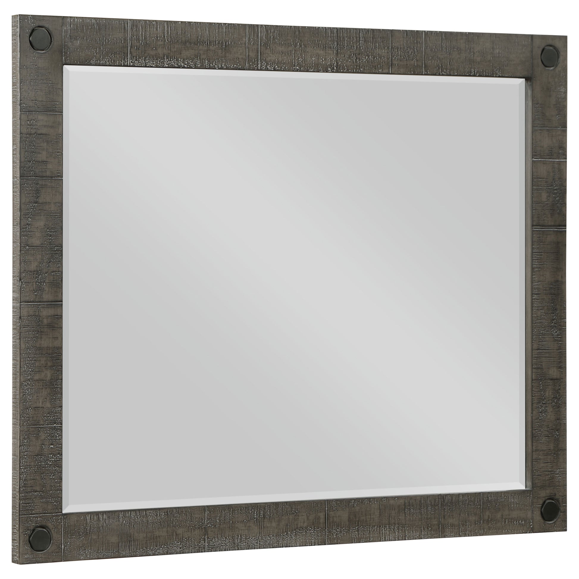 Top off a stylish Lilith collection bedroom set with the bright reflectivity of a framed mirror. Perfect for the dresser top, it sports a matching distressed gray finish over roughhewn wood details in pine wood and veneer. Each corner of the frame is complete with a single hexagonal bolt head, offering that perfect touch of rugged, industrial-inspired energy. The mirror glass is beveled to create a touch of depth within your bedroom. Use the mirror for morning rituals, or for quick 'fit check on your way out the door.