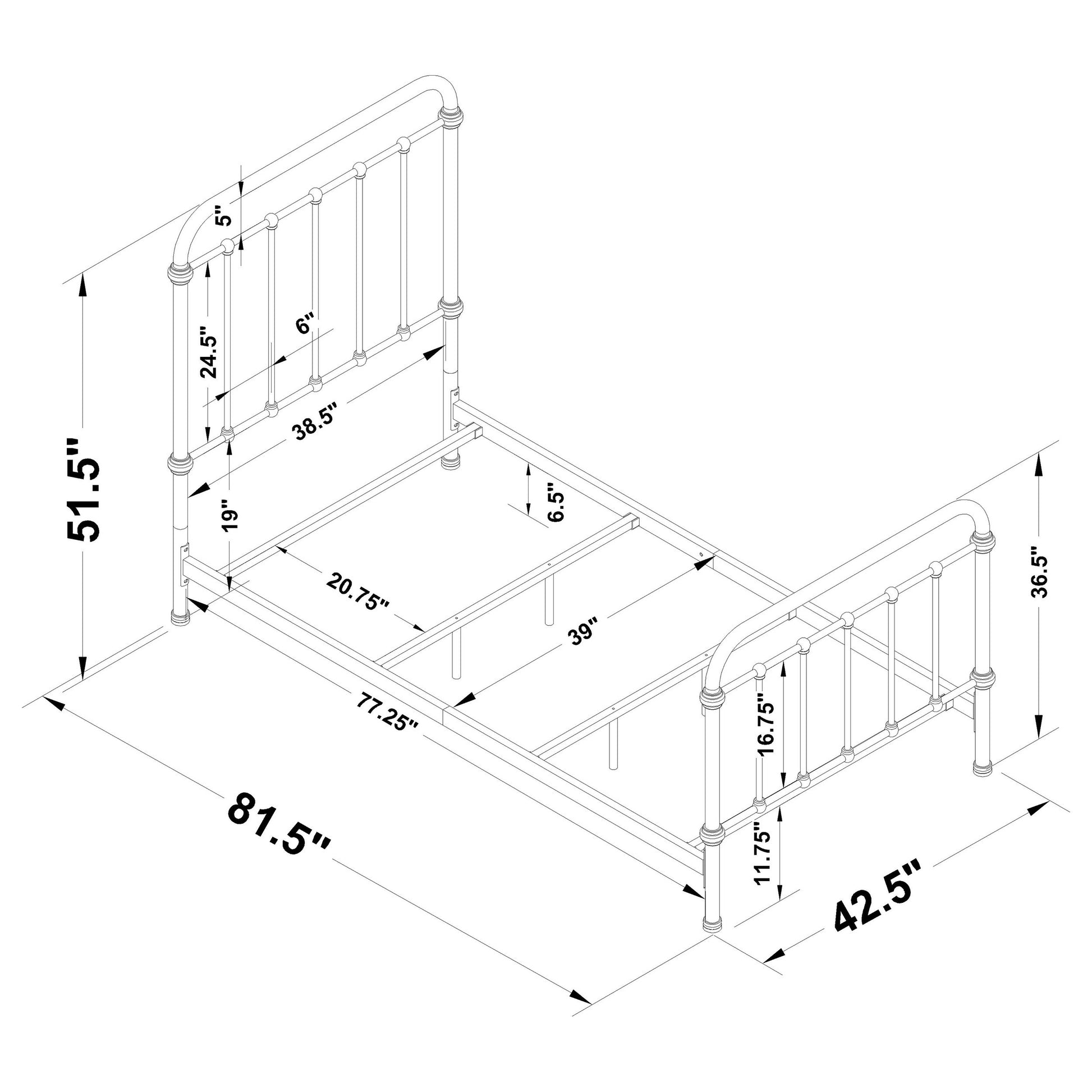 Bring vintage-inspired charm to your bedroom with this farmhouse-style metal bed. Designed with a sturdy heavy-gauge metal frame, it features a dark bronze powder-coated finish that enhances its timeless appeal. The headboard and footboard showcase a vertical spindle design with continuous weld construction for added strength and durability. Built for stability and long-lasting use, this bed adds rustic elegance to both modern and classic interiors.