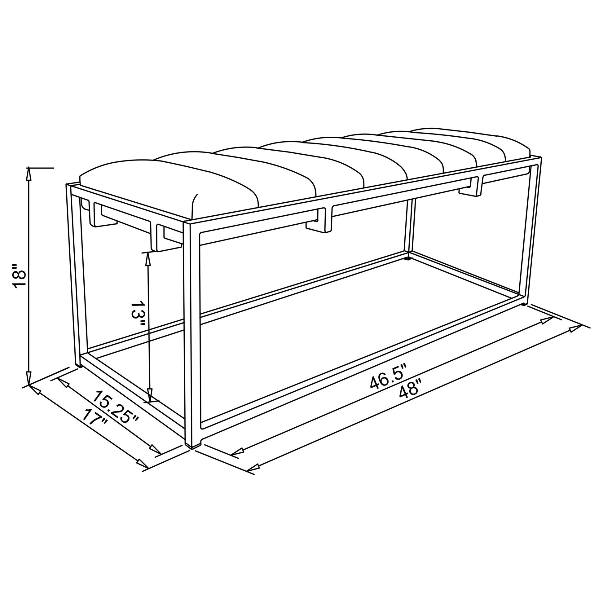 Add serious style to any living space with this stunning metal bench. Crafted with a crisp, angular metal base, it showcases sleek lines of metal for a truly elegant look. The base boasts a beautiful gold finish that adds a luxurious touch of polish. The seat is upholstered in rich, dark grey velvet for an exquisite look and feel. Deep, vertical channeling completes its design with dramatic, modern flair.