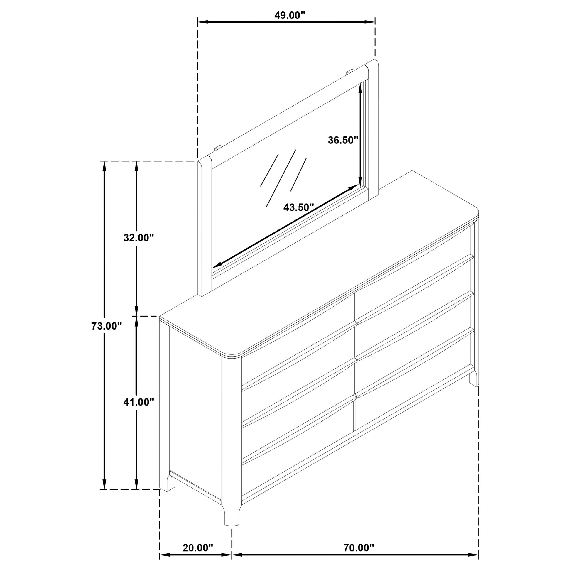 Introduce the earthy character of beautiful walnut with this transitional eight-drawer dresser and mirror combination. It delivers plenty of space for clothing and accessories, with a wide top for decor and personal items. The mirror adds lightness and reflectivity, complete with a wooden frame and beveled glass for a refined look. The dresser boasts a walnut veneer finish, adding the character of wood grain details to your bedroom. Drawers include felt lining in the two top, with cedar that adds protection against pests.