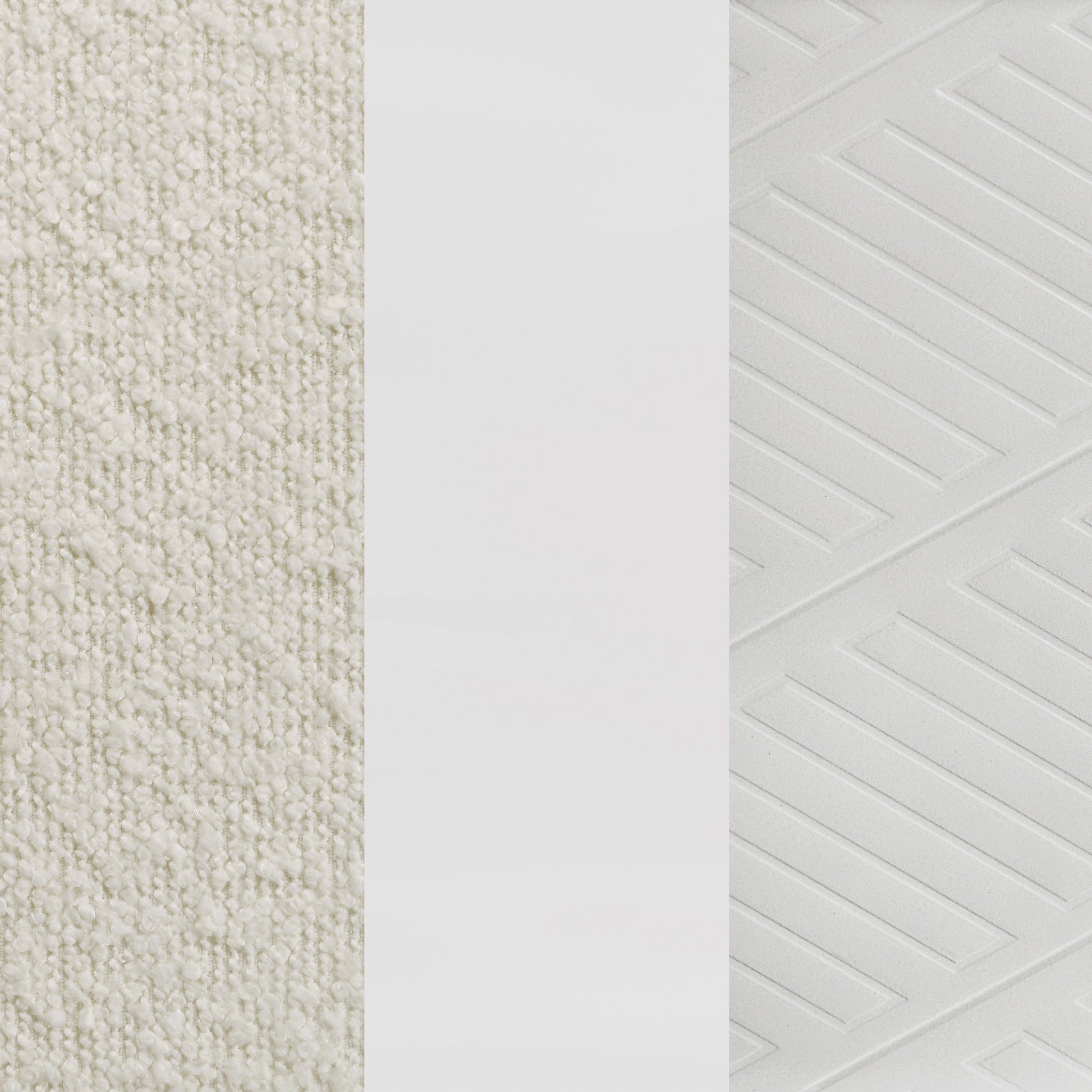 Create a cohesive and luxurious look in your bedroom with this bedroom set. Featuring a bed, nightstand, dresser, mirror, and optional chest, each piece is designed with a modern Italian aesthetic. The white finish, picture framed recessed panels, and embossed herringbone graphic patterns exude sophistication, while the mirror framing, acrylic legs, and polished chrome metal hardware add a touch of opulence. This set offers both style and functionality, making it the perfect choice for your elegant bedroom.