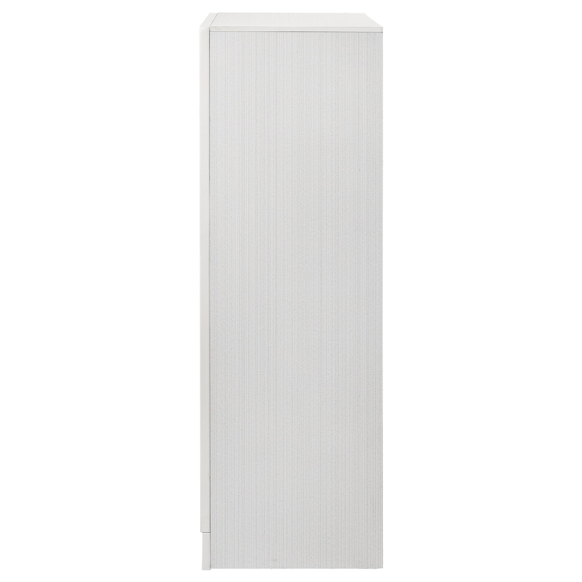 Add posh, upscale ambiance to your bedroom decor. This chic, stylish chest livens up a room with a dazzling touch of sparkle. With a hidden jewelry drawer built in, it keeps valuable items safe and secure. Its drawers are lined with felt for a luxurious hint of softness. Its six convenient drawers are built with metal extension glides for versatile ease of use.
