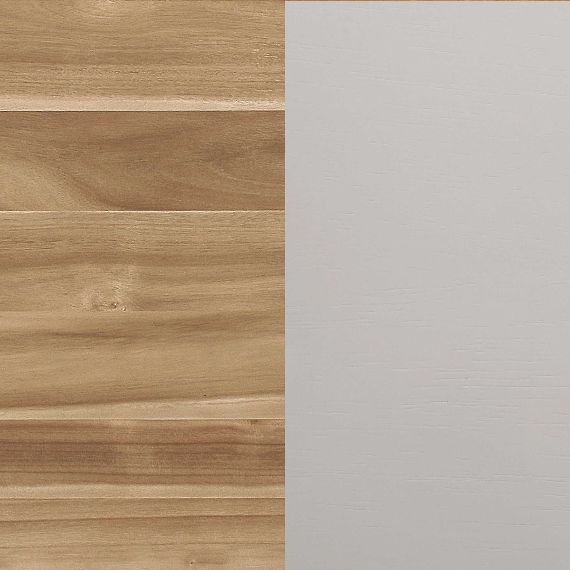 A decorative base adds chic flair to the casual contemporary nature of this rectangular dining table. Delivering farmhouse charm without overwhelming, the table shows off a acacia brown wood top that brings warmth and dimension with earthy wood grain patterns. Its updated base adds angularity with a tapering apron design and flared legs that taper gently to create a fin-like profile. A cool white finish completes the look with bright, airy ambiance. A perfect balance of understated and eye-catching elements, this table is a lovely choice for a family dining room or eat-in kitchen.