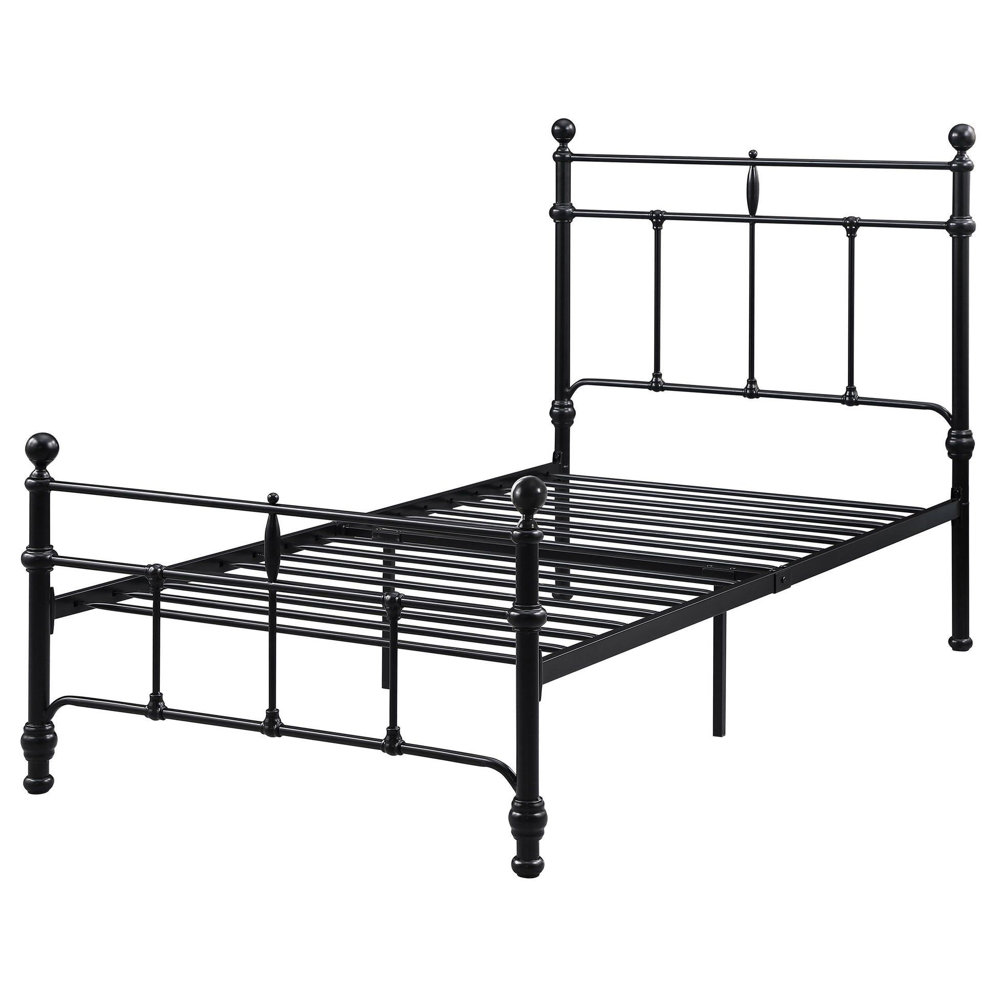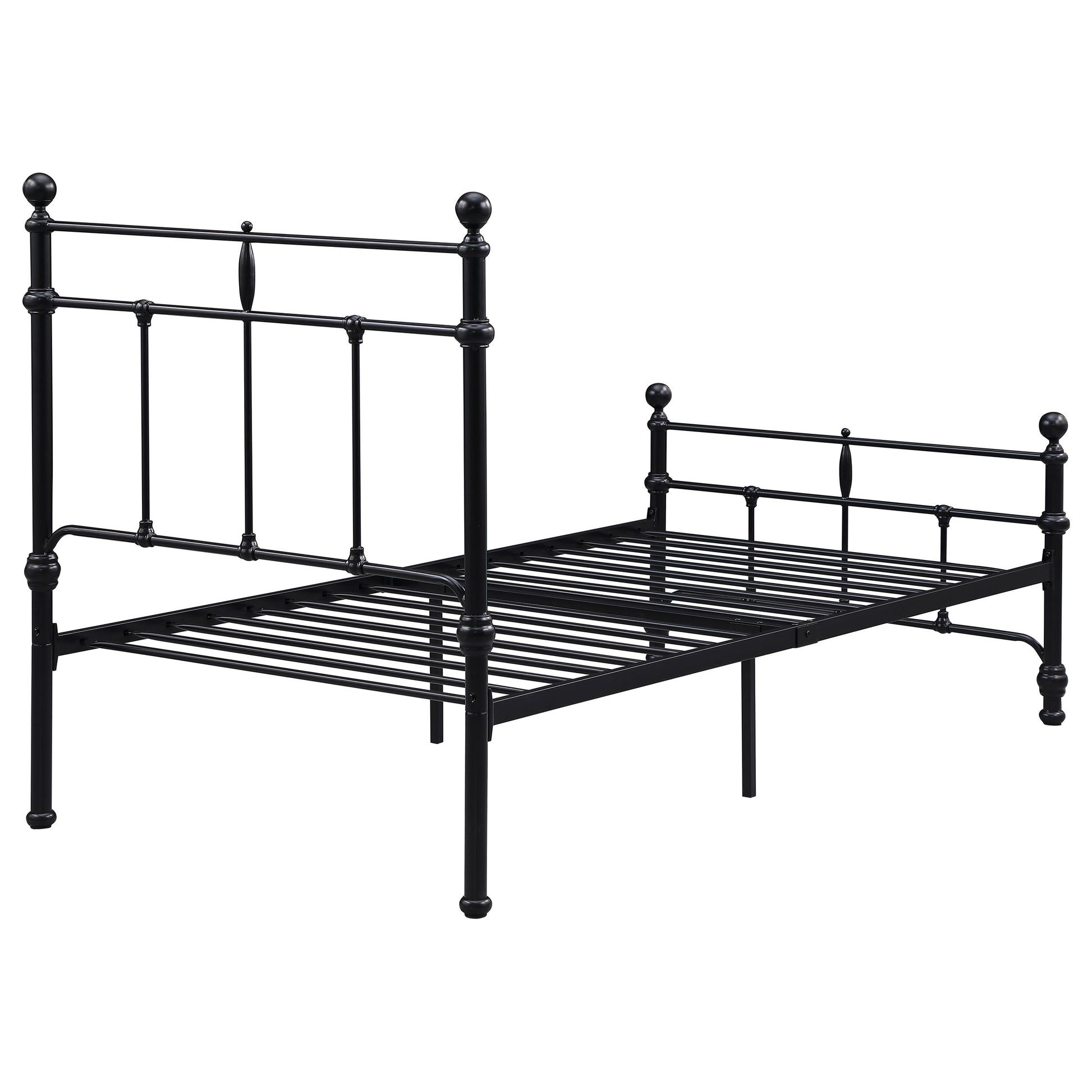 Bring timeless charm and elegance to your bedroom with this beautifully crafted metal bed. Its vintage-inspired design features a sturdy metal frame, complete with intricate detailing on the headboard and footboard, all finished in a sleek matte black powder coating. This finish not only enhances its classic silhouette but also provides a durable, long-lasting surface. Perfect for traditional, rustic, or industrial-themed interiors, this bed combines style with robust construction for lasting support and a comfortable night's sleep. Elevate your space with the subtle sophistication of this statement-making metal bed.