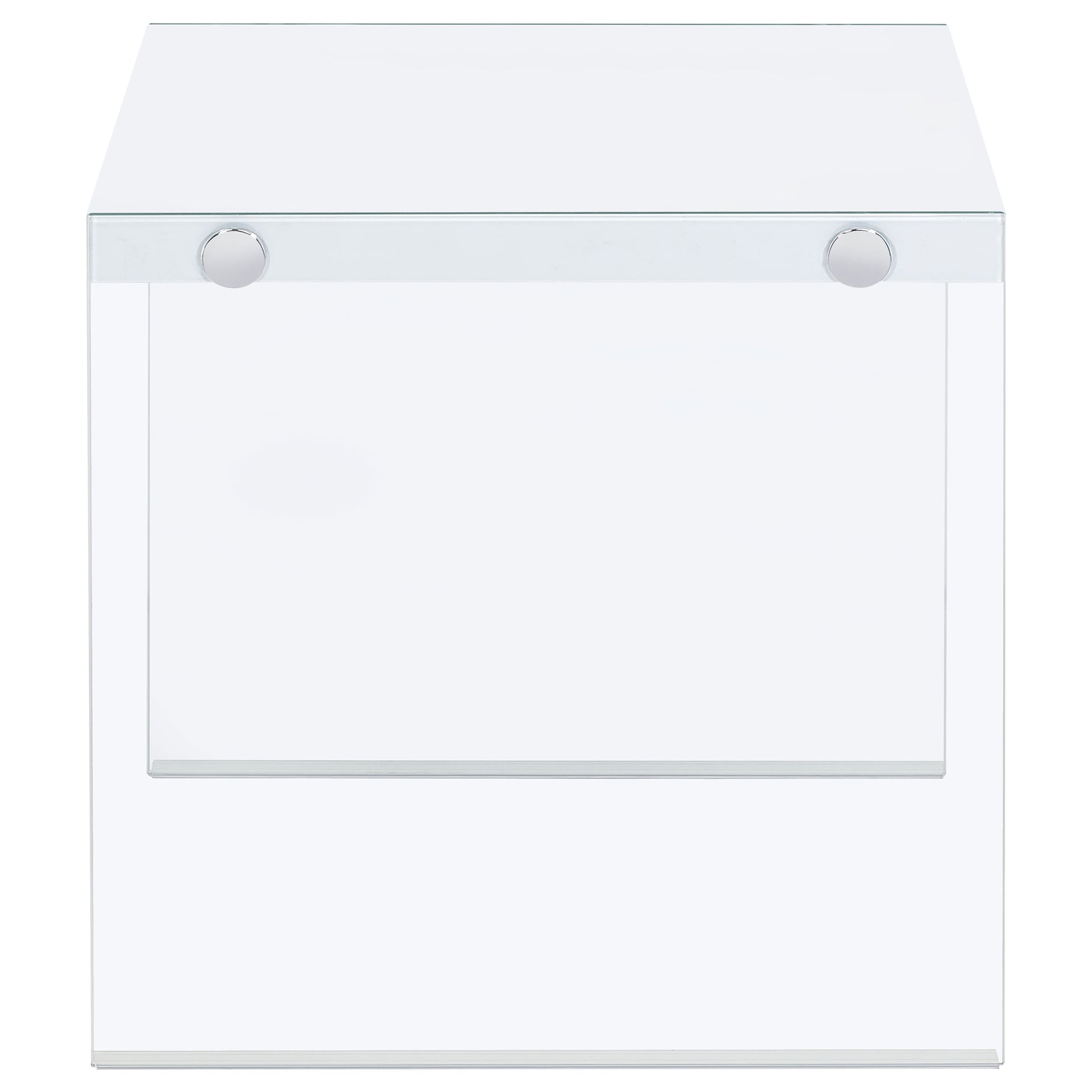 Bring a modern touch to your living space with this ultra-sleek square end table, featuring a white high-gloss engineered wood top for a refined look. Clear tempered glass side panels add an airy, floating effect while ensuring structural durability. Compact and versatile, this piece is ideal as an accent side table for various living room arrangements. Its minimalist design complements contemporary decor with ease, making it perfect for both functional use and aesthetic appeal.