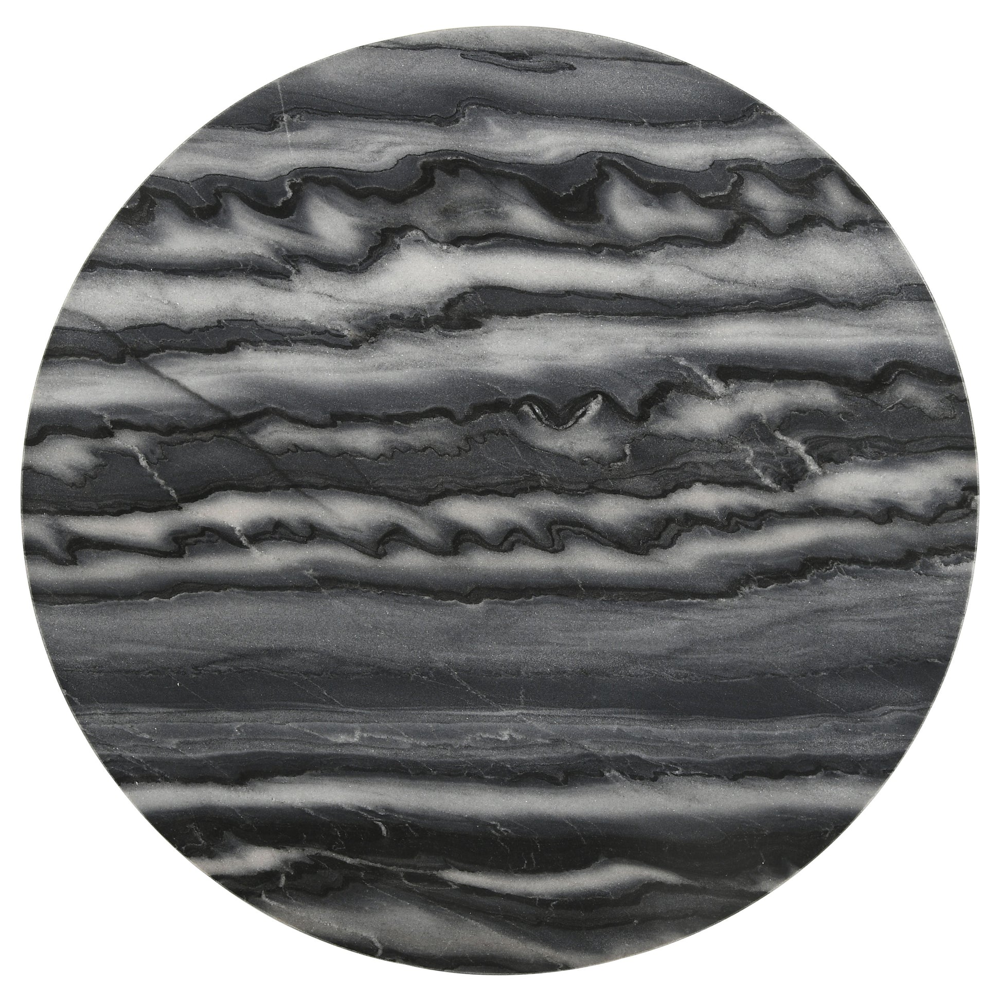 A compact profile makes maximum impact with impeccable design and luxurious materials. A contemporary side table is perfect for drinks, complete with a round top that acquits itself wonderfully in your living room. The top is made from beautiful black marble with distinctive veining that offers organic elegance and earthy character to sleek surrounding decor. The base is an inverted goblet, complete with a slim metal stem and warm brown mango wood cup that offers stability and artisan character. The intriguing combination of metal, stone and wood adds depth and dimension to a chic silhouette that finds a home in contemporary or modern farmhouse design.