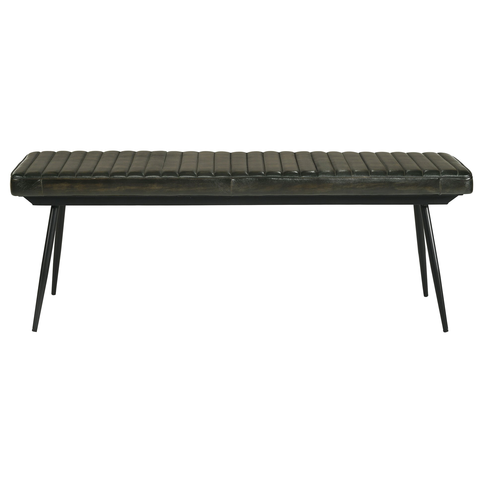 Attention to detail offers a calming sense of elegance to a casual dining set created for comfort and aesthetics. Start fresh with a set anchored by a natural finish sheesham table with a spacious rectangular top and tapered, rounded legs. A dark apron with geometric design detail adds an energizing effect. Mid-Century Modern influence styles easy side chairs with scoop seats and a thick back, both with channeling. Metal framing features iconic retro slender rounded, splayed legs, as a long dining bench opens up options for extra seating.