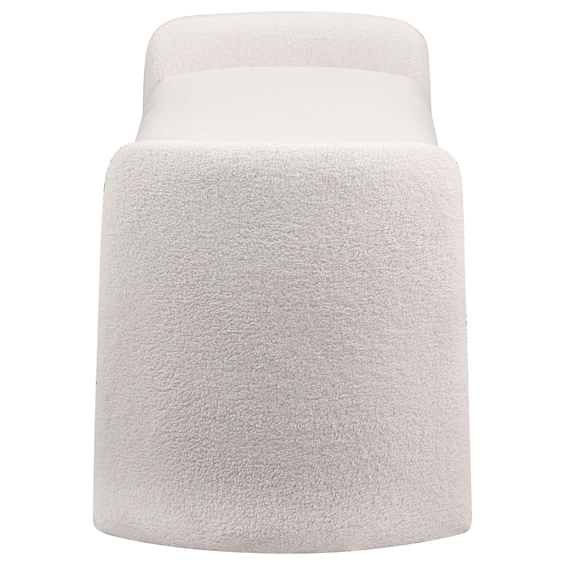 Soften the foot of your bed or a living room wall with the inviting nature of a modern accent bench. It's a charming choice, offering an interesting silhouette complete with rounded supports that extend upward to create arms. The bench is padded with foam for excellent comfort. Ivory boucle upholstery fabric is soft and textured, creating depth and dimensionality in your space. This bench features a contemporary profile, perfect for a modern bedroom, foyer, or living room.