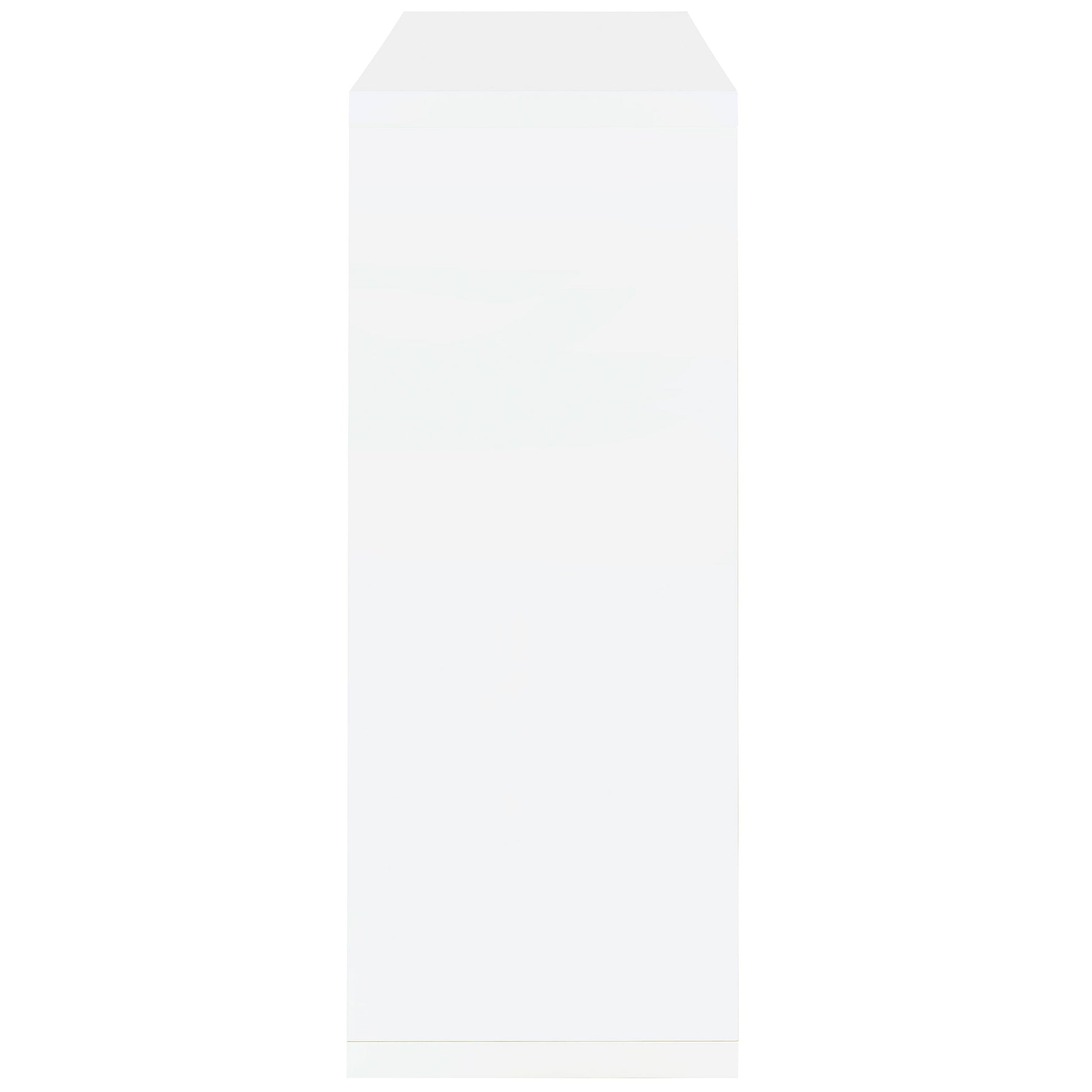 This contemporary bar unit will instantly elevate your hosting abilities. Convenient and versatile, it includes two glass shelves to accommodate your choice of beverages. It comes complete with a handy wine glass rack, allowing you to keep all your bartending accessories in one place. Its attractive design is gracefully pulled together with smooth, sleek lines, chrome accents, and an eye-pleasing gloss white finish. This unit looks especially chic and glamorous in a gathering space with a modern decor.