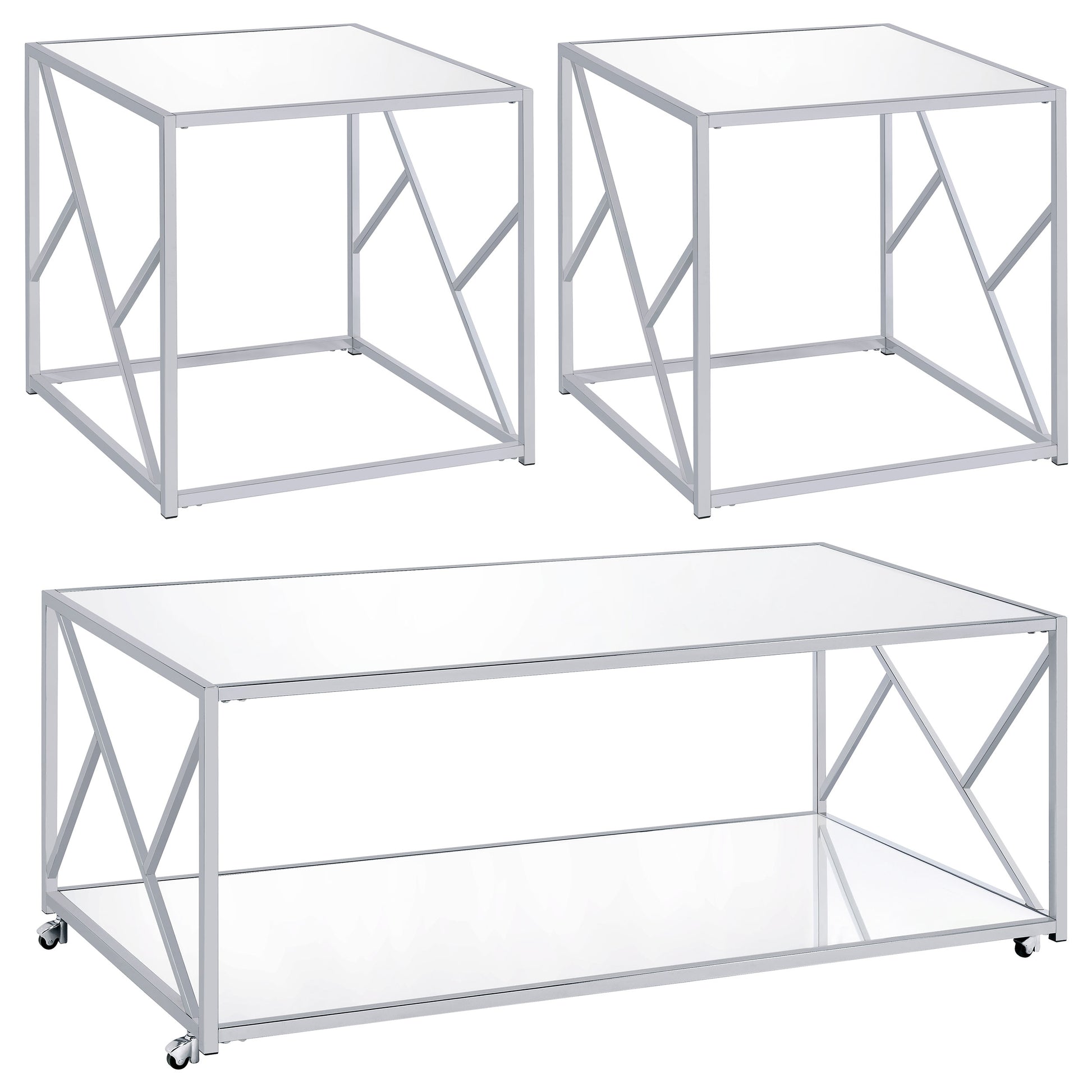 Provins 3-piece Coffee and End Table Set Mirror and Chrome