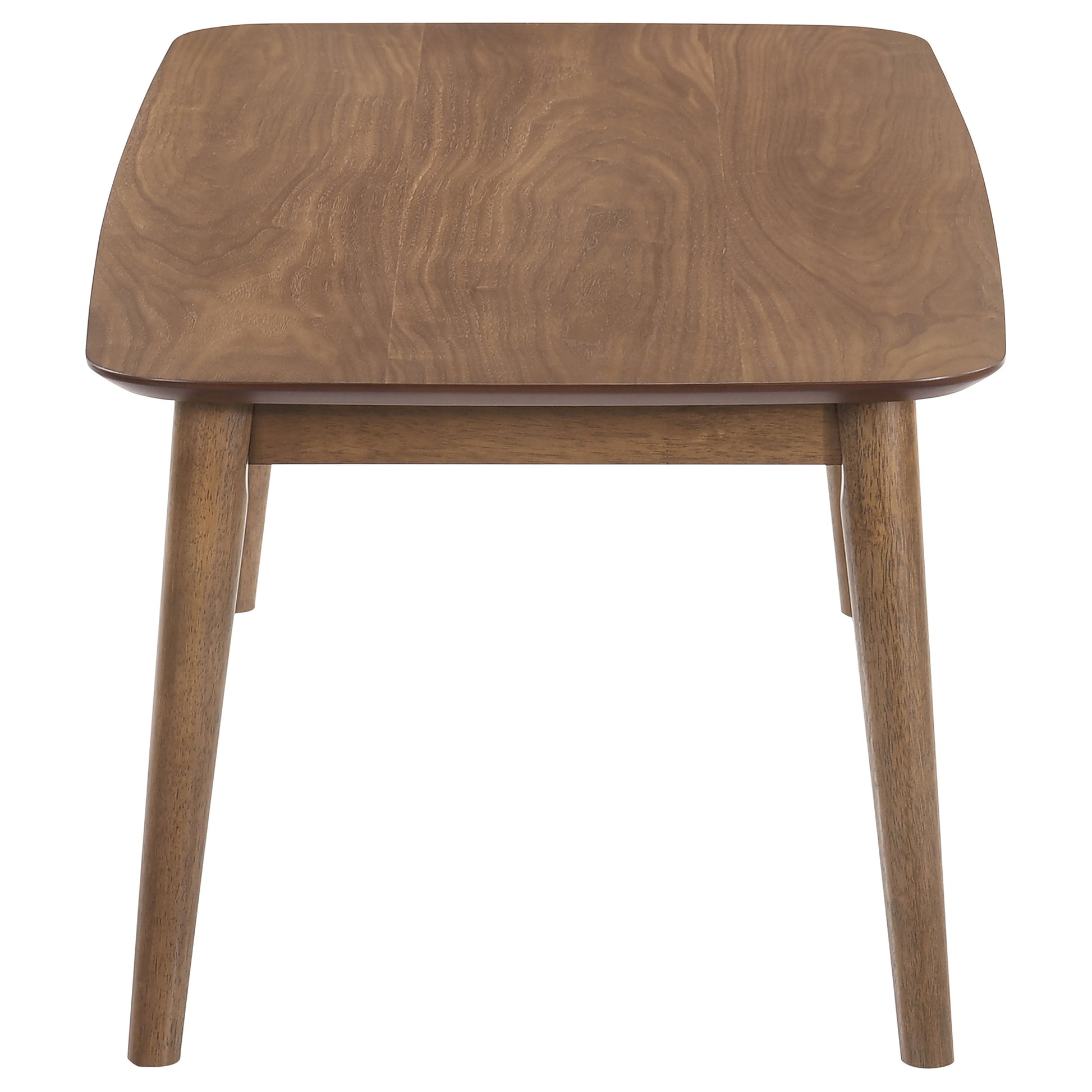 Create a subtle vintage flair with this mid-century modern three-piece occasional set, complete with a coffee table and two end tables. Keep books, table lamps and more on this collection of essential living room furniture pieces. Designed with a natural tone walnut veneer finish throughout, this collection offers a warmth to a space. Flared and tapered legs push the retro-inspired vibes, while a chamfered edge of each top offers a softer, more graceful look and feel. Arrange this coffee table and end table set in a contemporary or bohemian-inspired living room for a playful, elegant aesthetic.