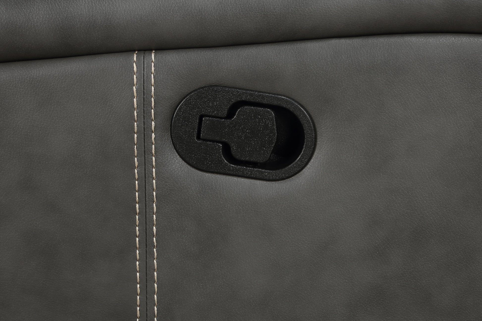 Rich gray and vertical contrasting stitching create a tailored look and feel for a modern power lift recliner. It pairs plush foam cushions with faux leather upholstery, creating a recliner that's both polished and exceptionally inviting. Wide track arms establish it's clean-lined silhouette, while a side pocket adds a place for the remote control or a book. The recliner is power operated with the included remote control, and includes lift functionality that helps one to their feet when needed. It's an ideal solution for multi-generational homes or those with mobility challenges.