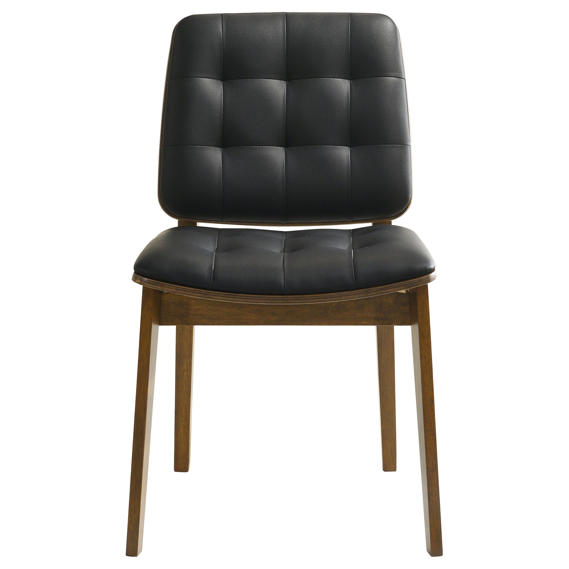 Inspiration for these classy dining chairs comes from a popular office chair design. Warm natural walnut finish and black leatherette provide timeless look and appeal. Stylish black leatherette cushions add a touch of modern flair. The ability to mix and match pieces lets you arrange this collection in the way that best suits you. Rubberwood, walnut veneer, and plywood construction provide both stability and support for many family gatherings.