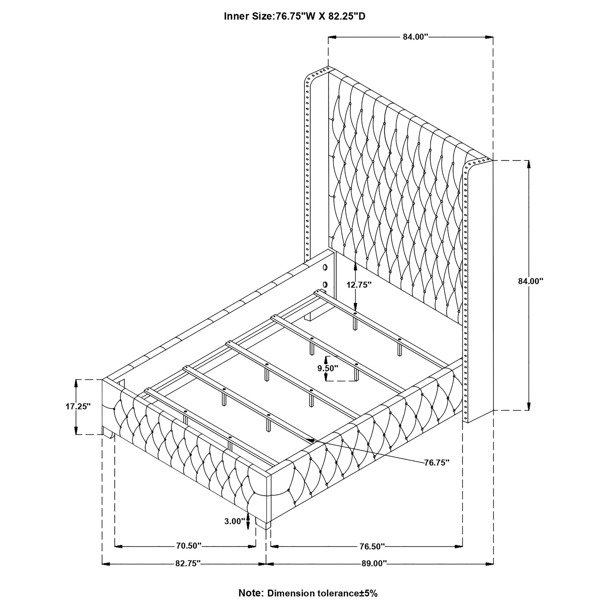 | Clearance Dimension For Adjustable Bed | 74.10"w X 82.28"d |
