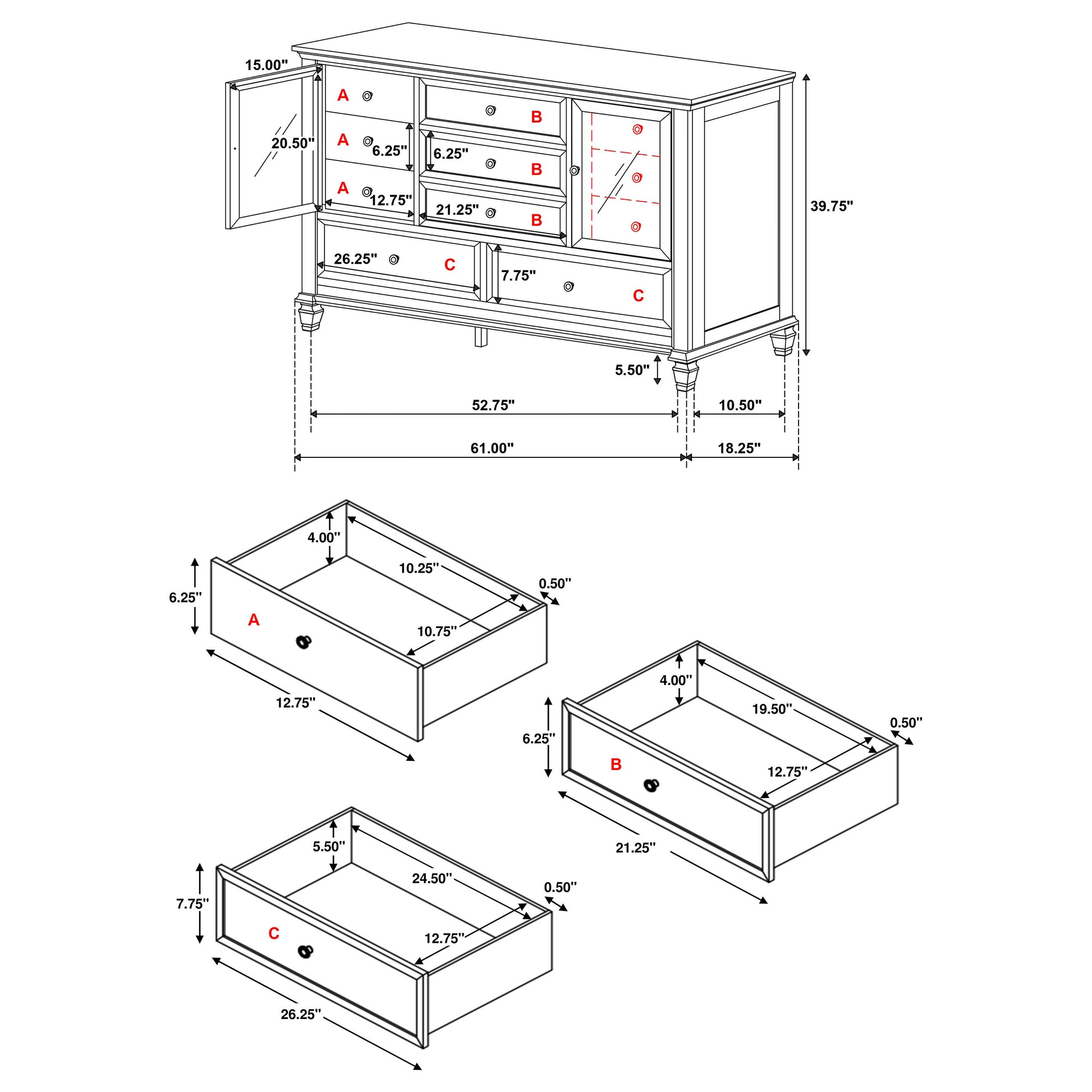 | Dresser | 61.25 | 18.5 | 40 | 191.83 | |