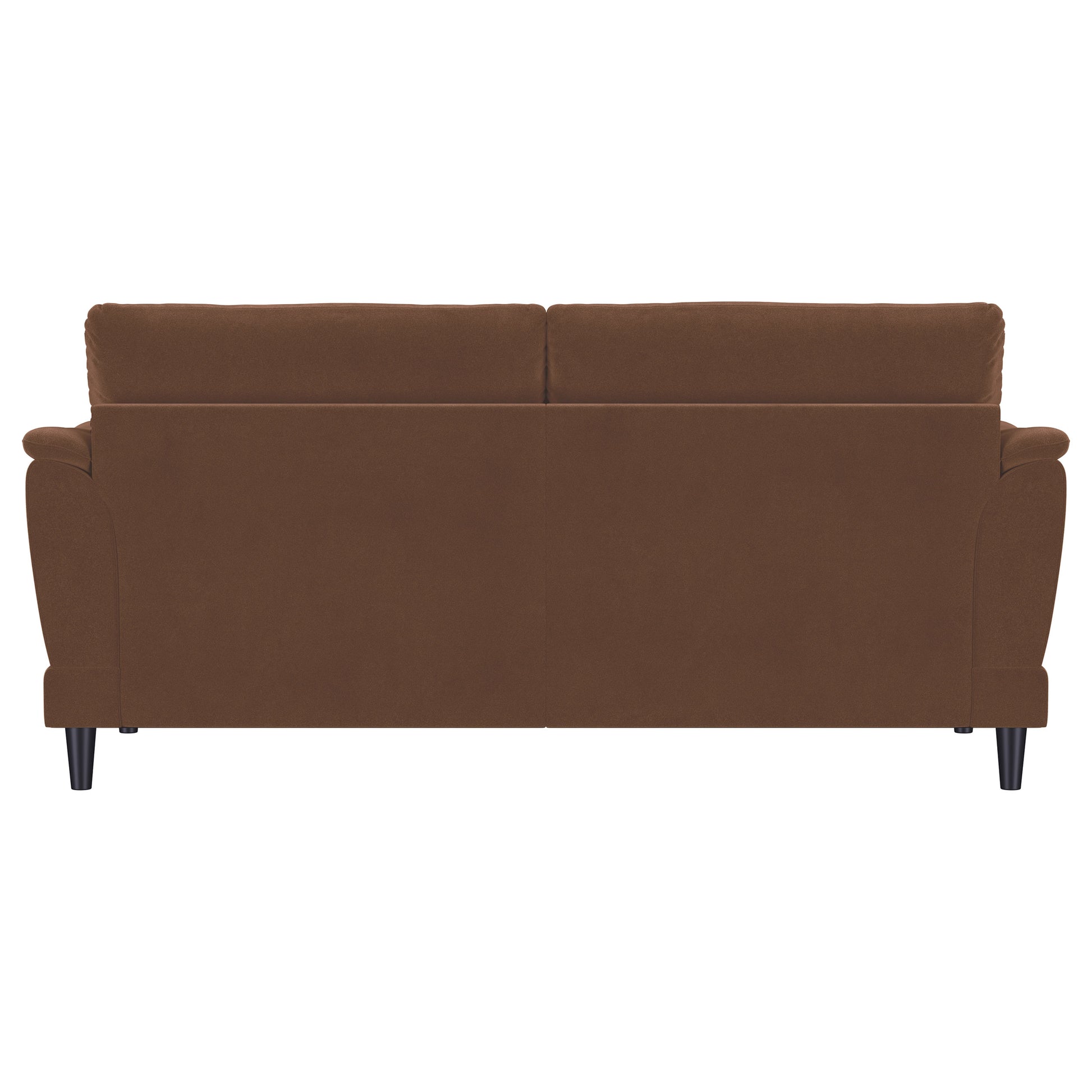 Unwind in style with this chic retro-inspired sofa, designed to deliver both comfort and timeless elegance. Upholstered in a rust woven fabric, it features plush foam seat cushions and curved tufted arms for ultimate support. The fully encased engineered wood frame ensures lasting stability, while sinuous spring seating offers durable comfort. Solid wood legs in an espresso finish complete the sturdy construction, adding a sleek modern touch to this versatile seating option.