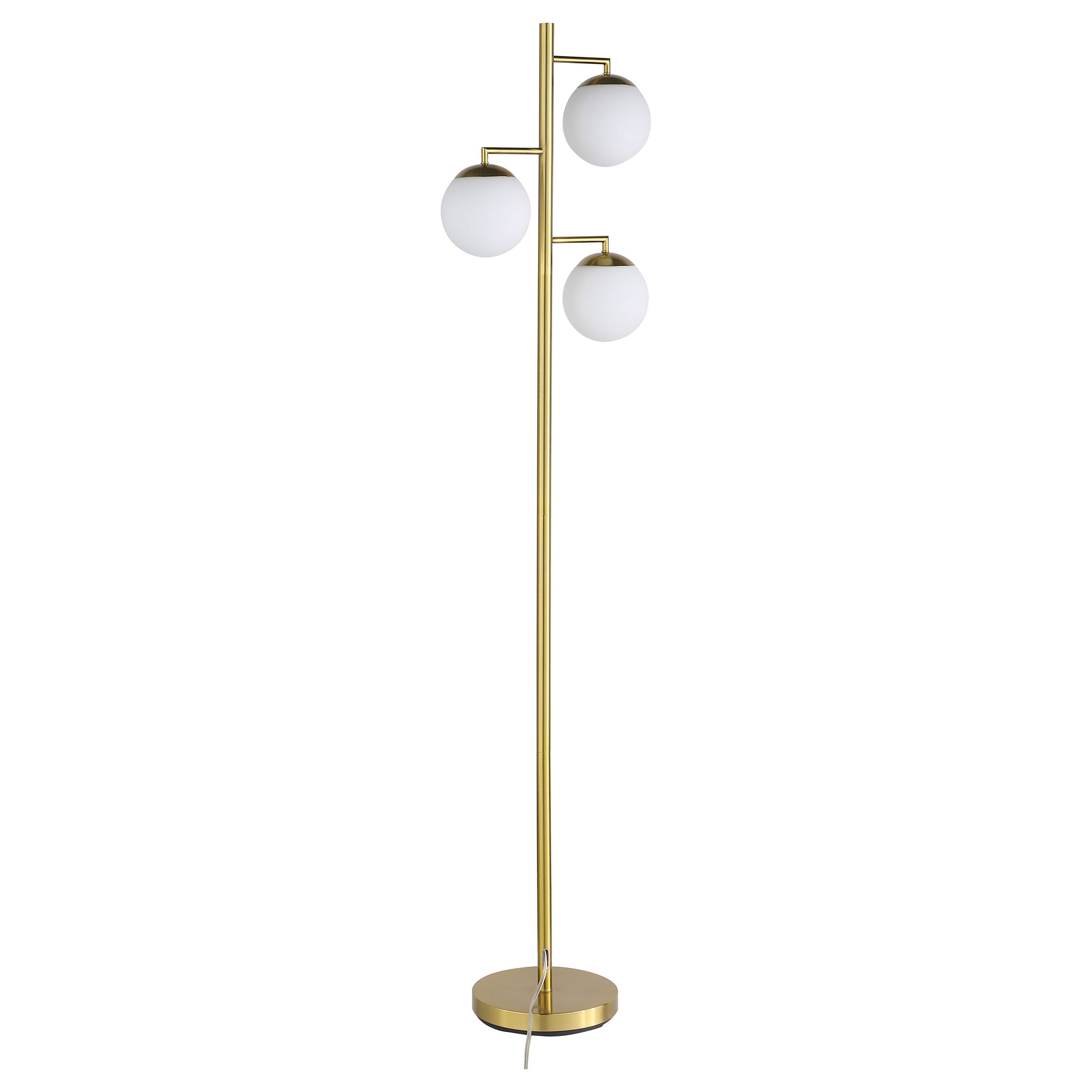 A striking design blends new and old design elements perfect for fitting in a mixed-motif and emits ambient lighting to illuminate your transitional space. You’ll love the retro feel of Mid-Century Modern personality in the Sena floor lamp, and will put it to good use in a living room or bedroom. Symmetry stands out with three festive frosted round white glass shades placed carefully to provide balance and proportion. A chic metal tube and base with a gleaming gold finish warms up a room with a dose of elegance. This floor lamp reflects the best of creative style harkening back to a past era.