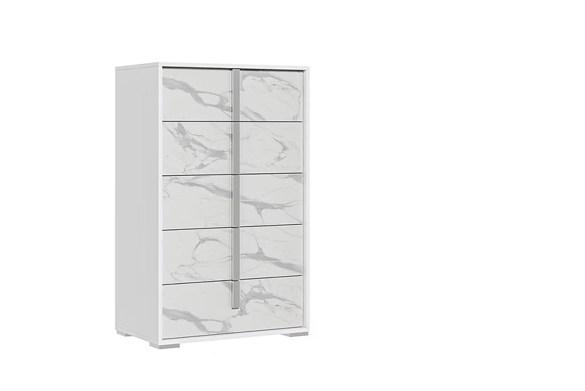 - White 100% glossy shiny finish; The bedroom set features two different shades of white, which may vary in appearance.