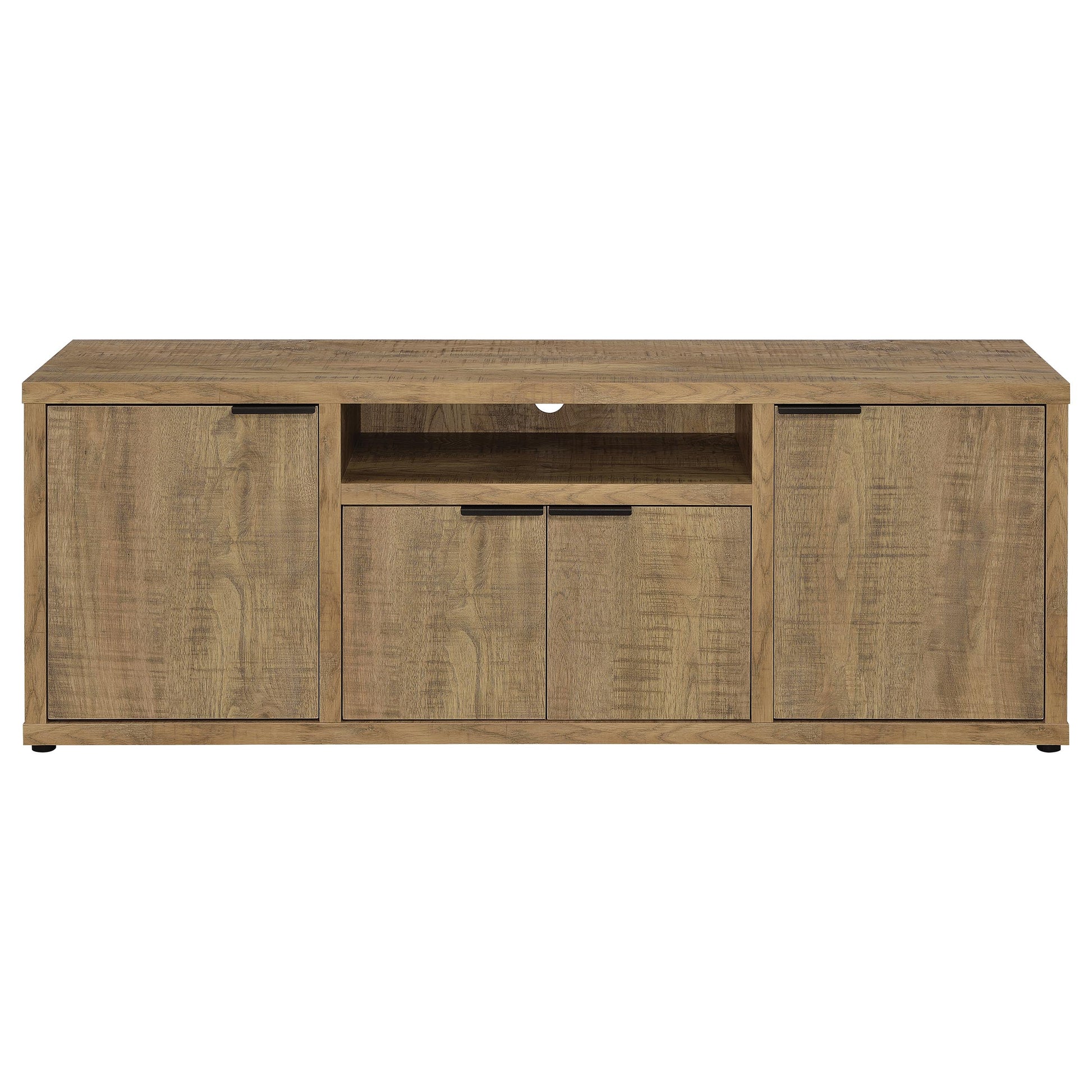 Transform your entertainment space into a rustic haven with our TV stand, drenched in a warm mango finish. Thoughtfully designed, it boasts six storage compartments ensuring all your media essentials have a designated spot. Two adjustable shelves offer flexibility, while the four doors keep your equipment and accessories concealed yet accessible. To further enhance your storage capacity and create a cohesive look, pair the stand with our matching media towers. This ensemble is more than just functional; it's an embodiment of rustic charm, ensuring your media zone is both organized and aesthetically pleasing.