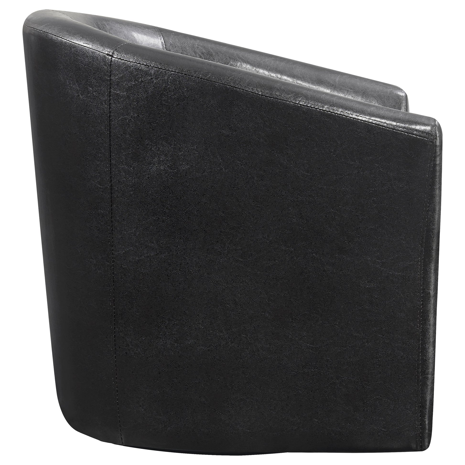 Freedom of movement adds a fresh upgrade to this swivel chair. Barrel-back design creates a comfortable seating experience and a tribute to retro fare. With dark brown leatherette upholstery, it's both inviting and easy to care for. Play up a bold print seating ensemble, or offer consistency in a classic monotone design scheme. This fashionable chair is an ideal addition to entertaining spaces.