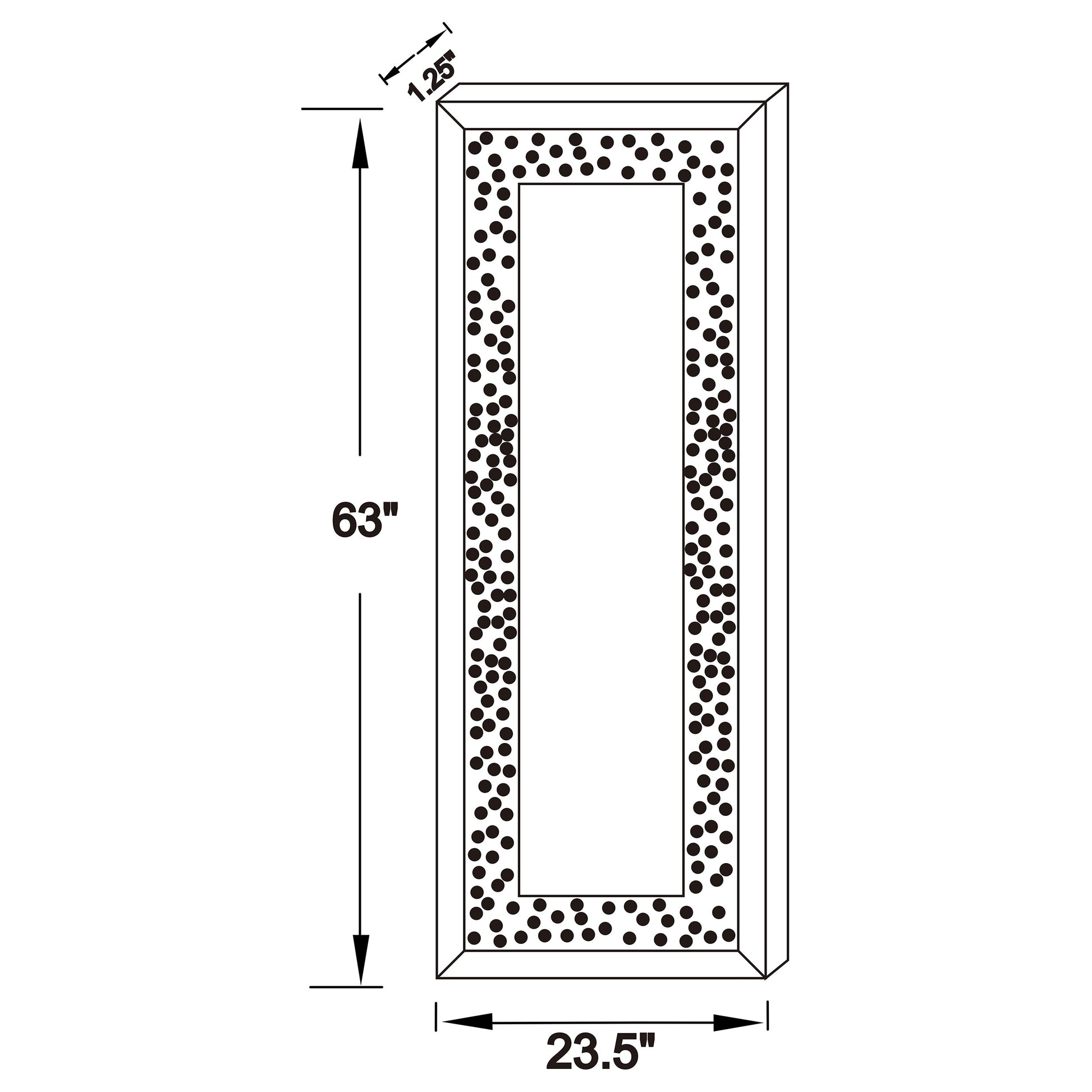 Glam up your space with this dazzling full-length floor mirror, designed to impress from every angle. Its rectangular shape is framed with sparkling silver rhinestone accents and bordered by sleek mirrored trim. Ideal for bedrooms, dressing areas, or walk-in closets, this modern glam mirror offers full-body reflection and radiant style in one striking piece.