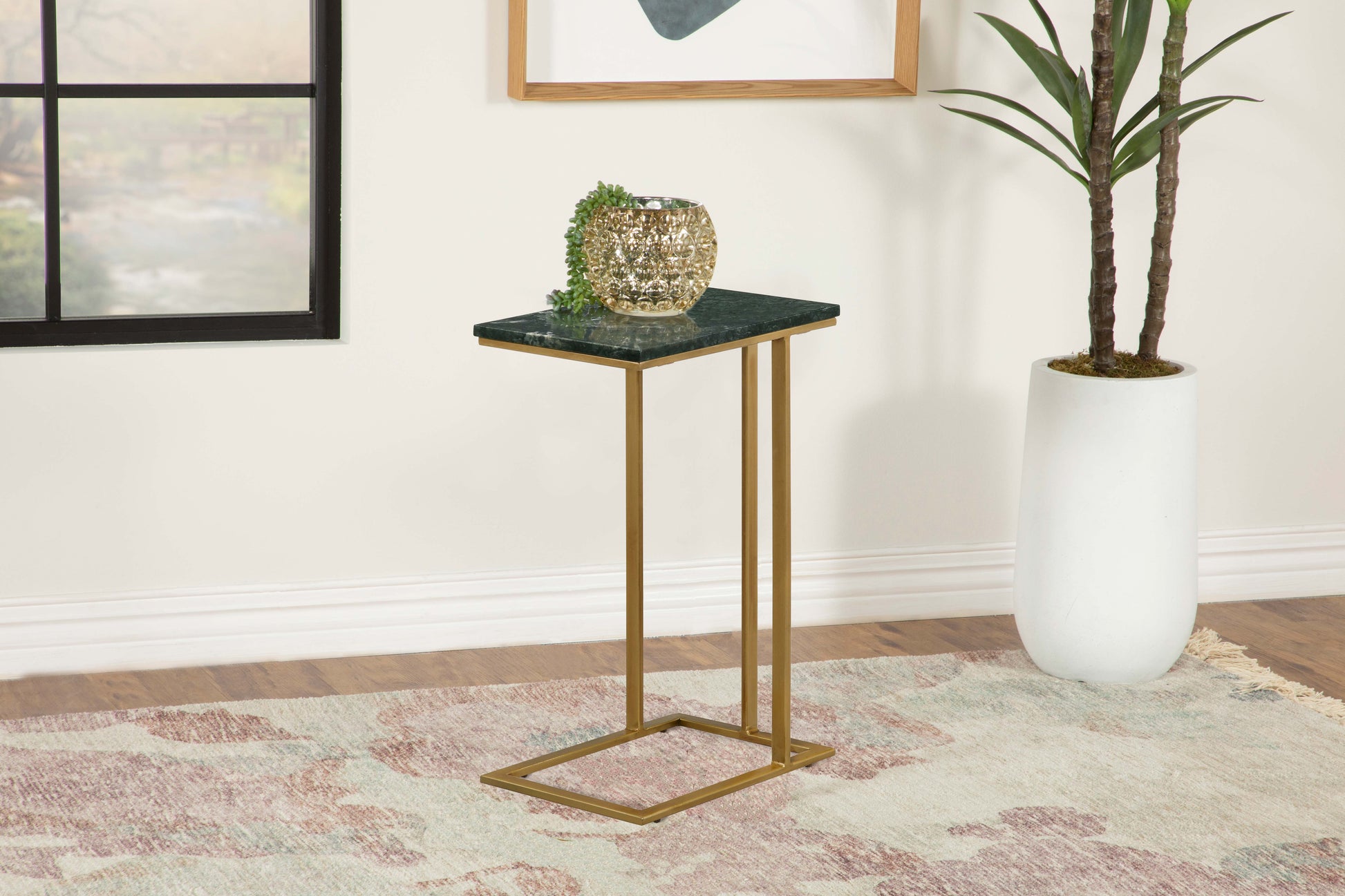Vicente Marble Top C-Shaped Sofa Side Table Green