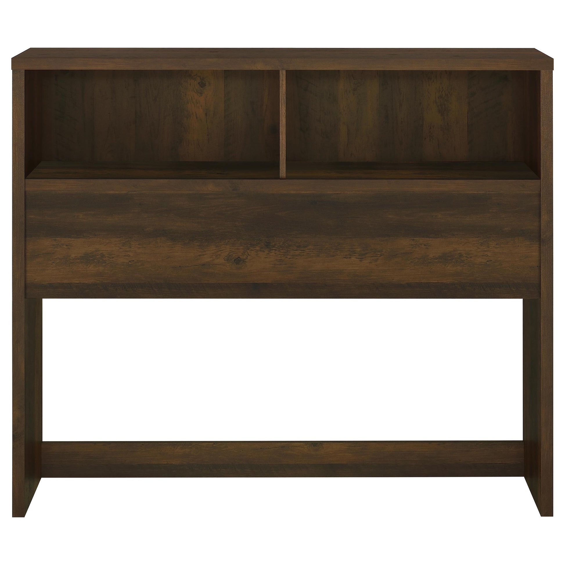 Organize your bedroom essentials with this bookcase headboard in a finish that matches any decor. Featuring two spacious open compartments, it offers convenient storage for books, décor, and personal items. Built from sturdy engineered wood and finished with a scratch-resistant laminate veneer, this headboard combines durability with style. Its versatile design adds a rustic charm to any bedroom while optimizing storage in small spaces.