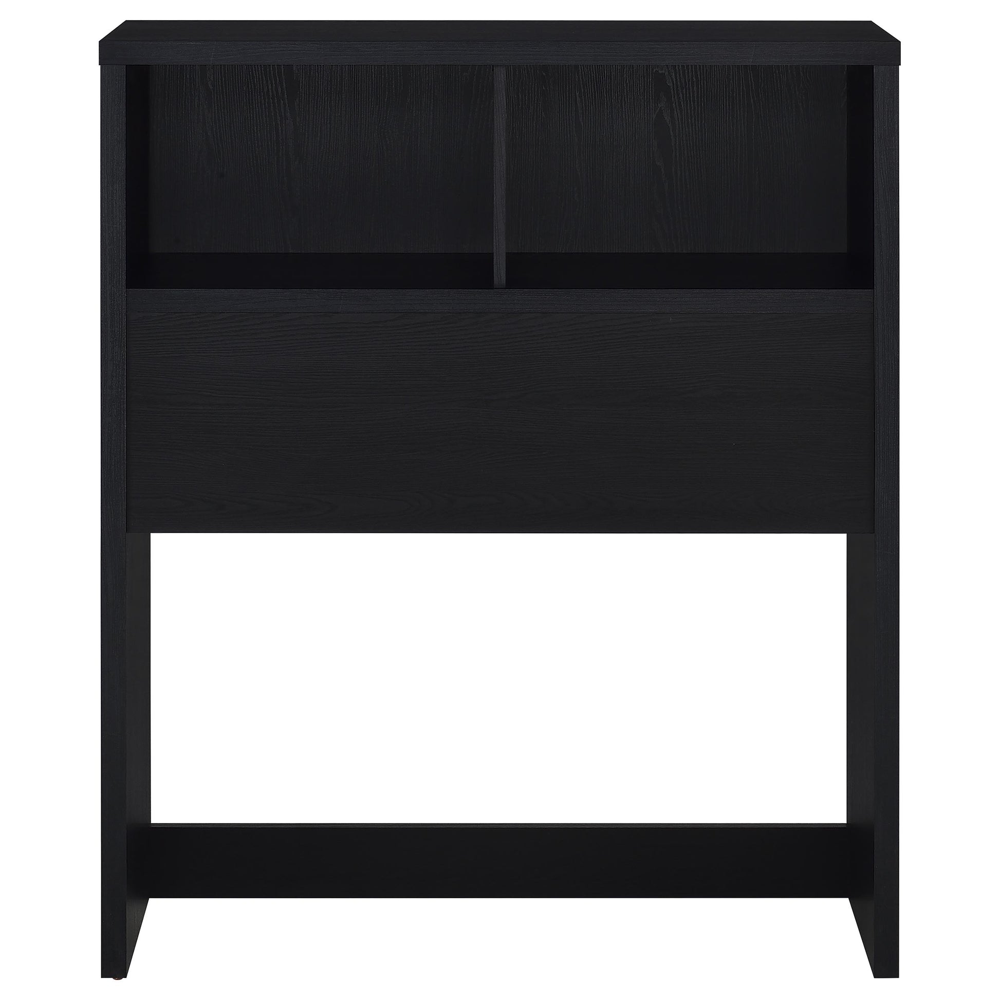 Organize your bedroom essentials with this bookcase headboard in a finish that matches any decor. Featuring two spacious open compartments, it offers convenient storage for books, décor, and personal items. Built from sturdy engineered wood and finished with a scratch-resistant laminate veneer, this headboard combines durability with style. Its versatile design adds a rustic charm to any bedroom while optimizing storage in small spaces.