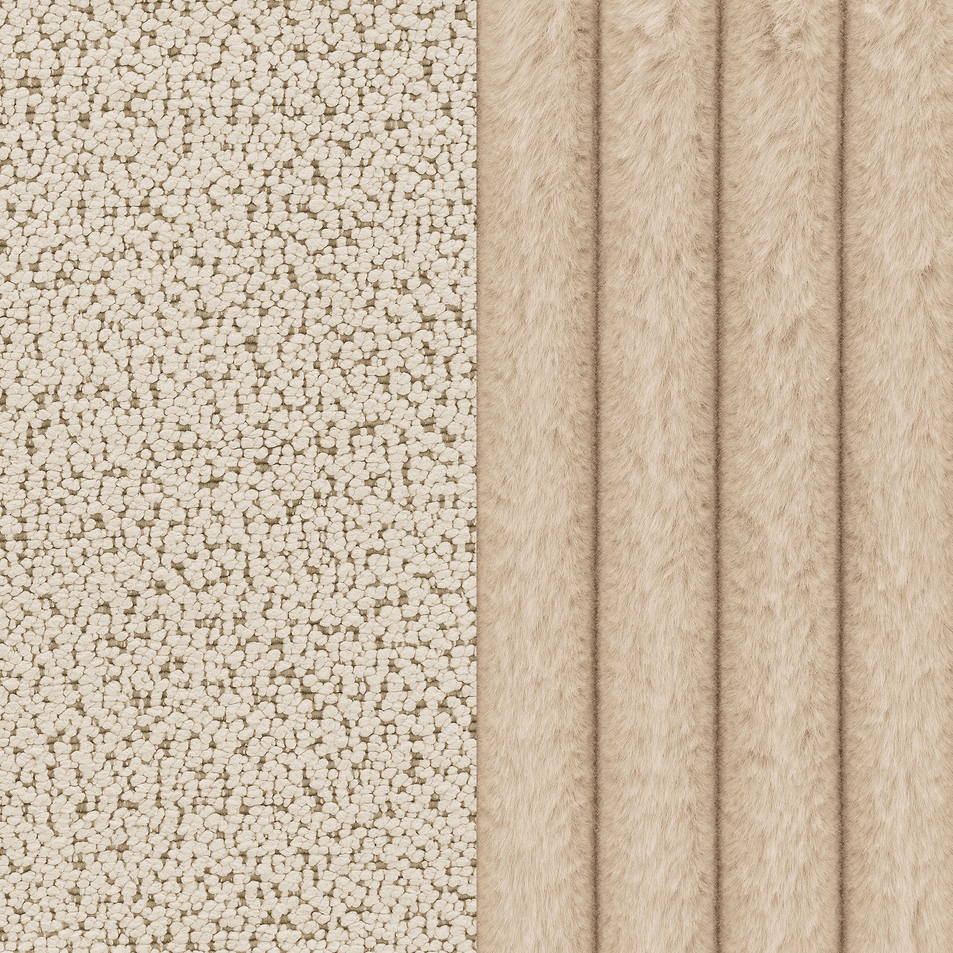 Cuddle up in stylish comfort with this modern extra-long sofa, a perfect interior focal point with its fun bubble-like design. The sofa shows off boucle upholstery in a sand pebble hue, adding an inviting warmth to your décor. It's incredibly comfortable and spacious, featuring wrap-around extra plush channeling with tufted accents on a waterfall bench seat, ideal for large living rooms and lounging or entertaining. Wide armrests are piped to create texture and depth, while offering a sloped design that adds comfort. The sofa is further enhanced with wide corduroy accent pillows filled with premium down-like fill for lasting comfort, and vertical channel tufting decorates the back and arms, adding visual interest.