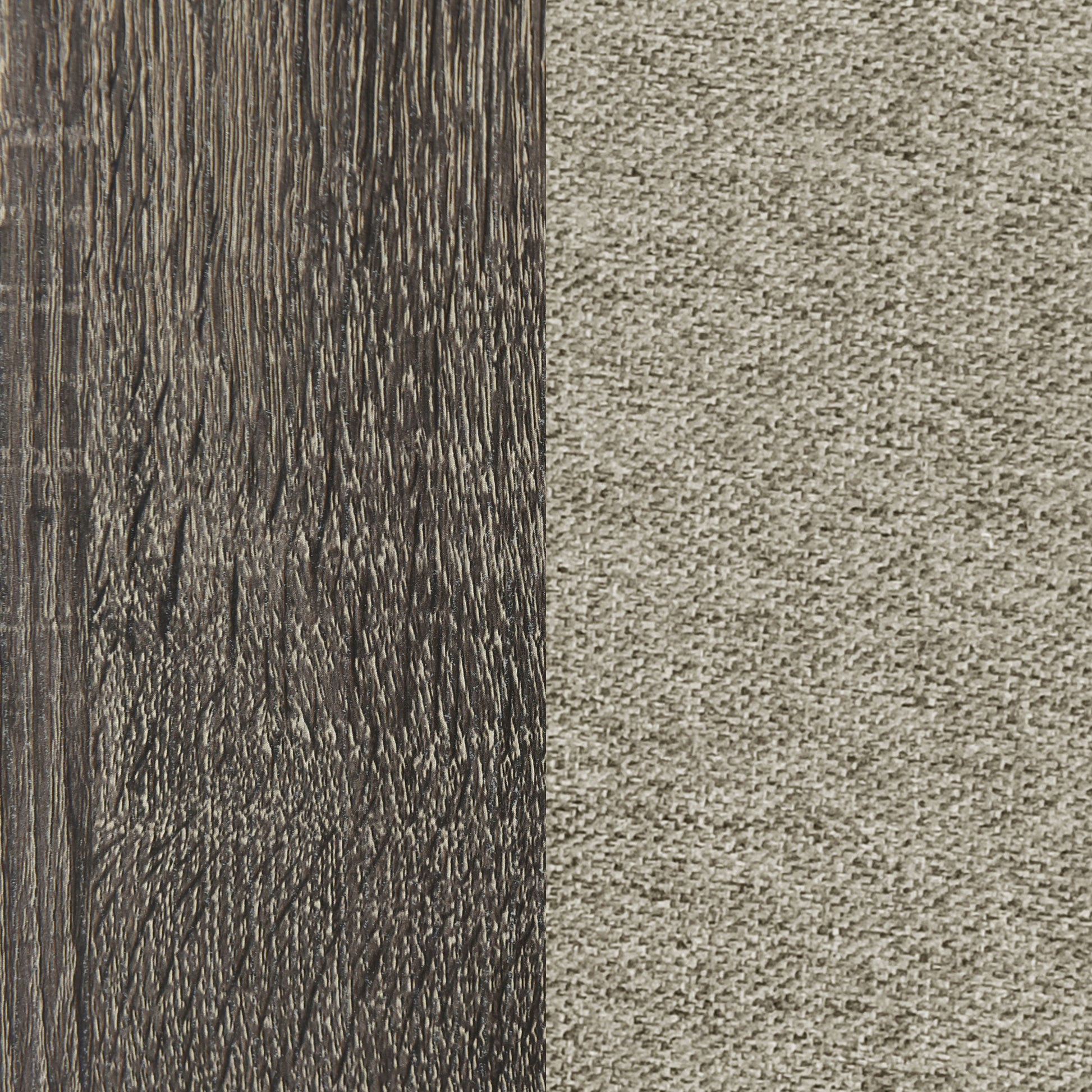 Introduce refined style in an approachable bedroom ensemble with this transitional wooden bed. With an upholstered headboard, it delivers impeccable comfort for lounging and relaxation. A brown oak wood grain finish pairs with laminate, delivering the perfect blend of style and durability. Tan fabric pairs with foam cushioning, delivering a complementary color tone that remains neutral in your bedroom. The bed features a tall headboard paired with a low footboard, creating an open, airy profile.
