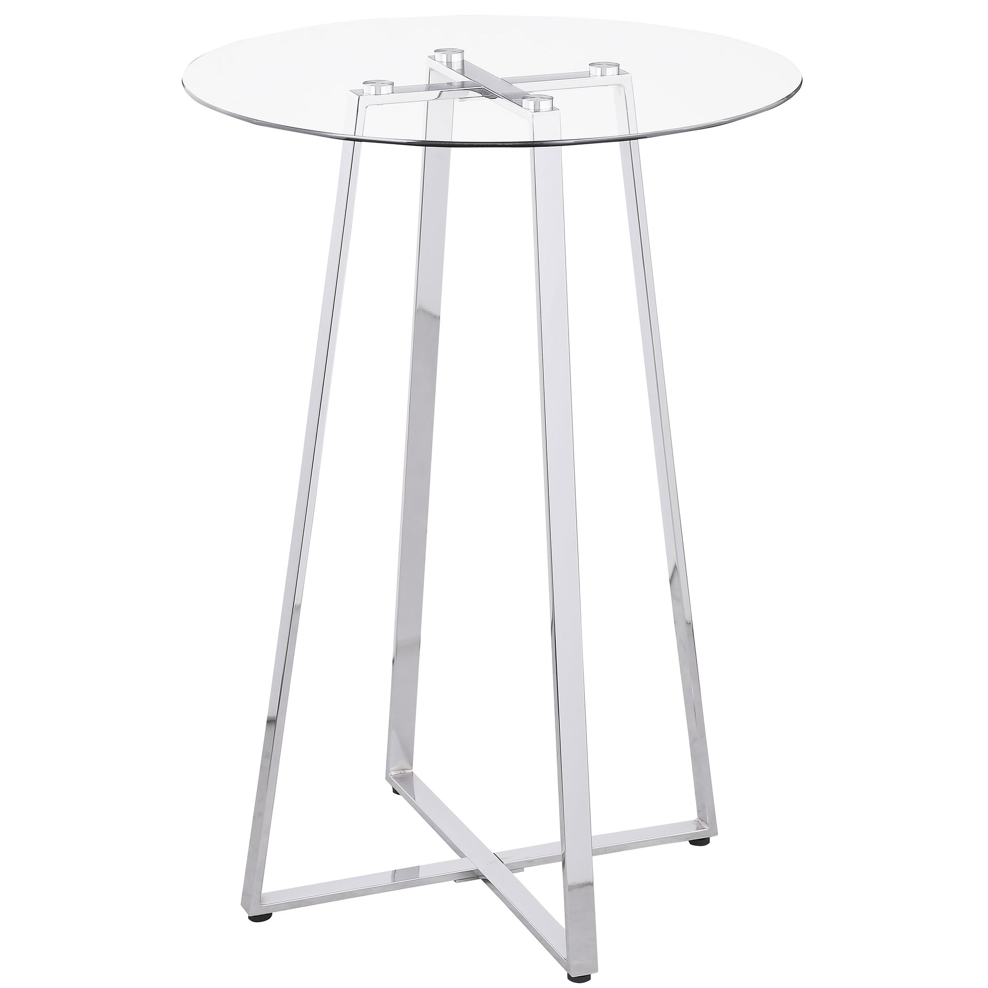 Whether you're sitting down to an intimate dinner or enjoying a cocktail with friends, this contemporary bar table helps you entertain in style. Its compact size allows for a variety of placement options, making it ideal for a small kitchen or dining area. An attractive yet simple design blends seamlessly with any home decor. Smooth, clean, tapered lines and a gleaming chrome finish give it a pleasingly modern appearance. A round, clear, tempered glass top completes its elegant look